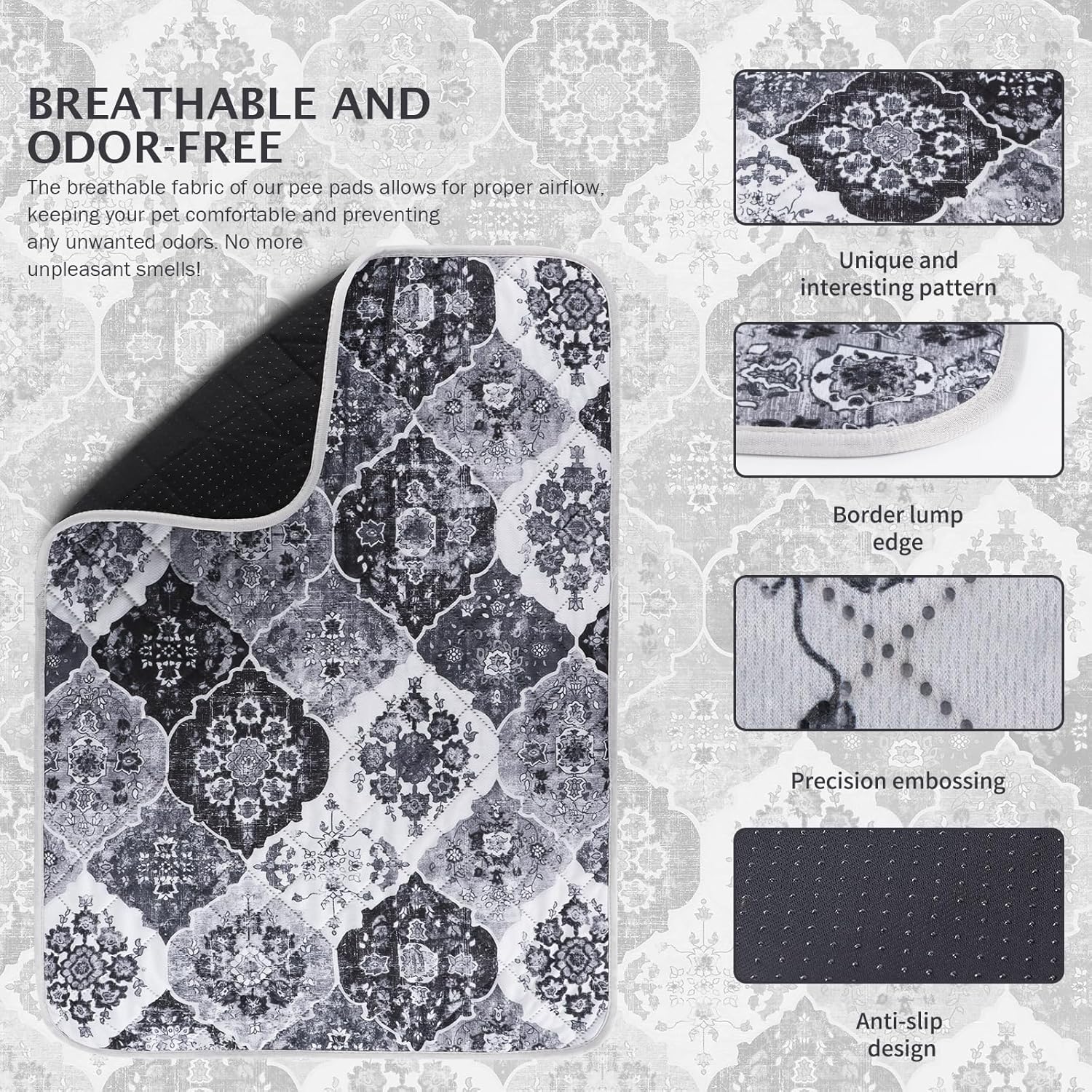 • 【Fashionable and Non-Slip】Our bohemian-print design adds a natural touch to the potty pads for dogs, giving your room a warm, casual vibe. And the non-slip bottom design makes the pet pee pads can achieve a certain fixed effect, you can put it anywhere you want. Soft and non-slip material makes it safer for dogs to use the pads.