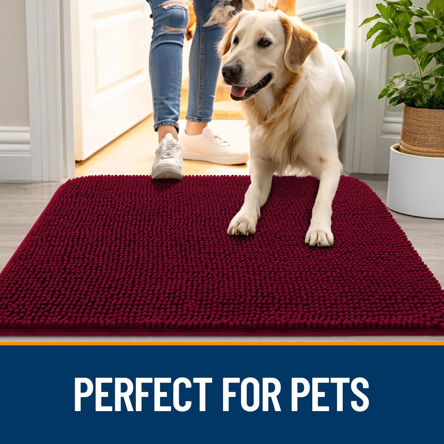 OLANLY Dog Door Mat for Muddy Paws 54x24, Absorbs Moisture and Dirt, Absorbent Non-Slip Washable Doormat, Quick Dry Chenille Mud Mat for Dogs, Entry Indoor Entryway Carpet for Inside Floor, Burgundy