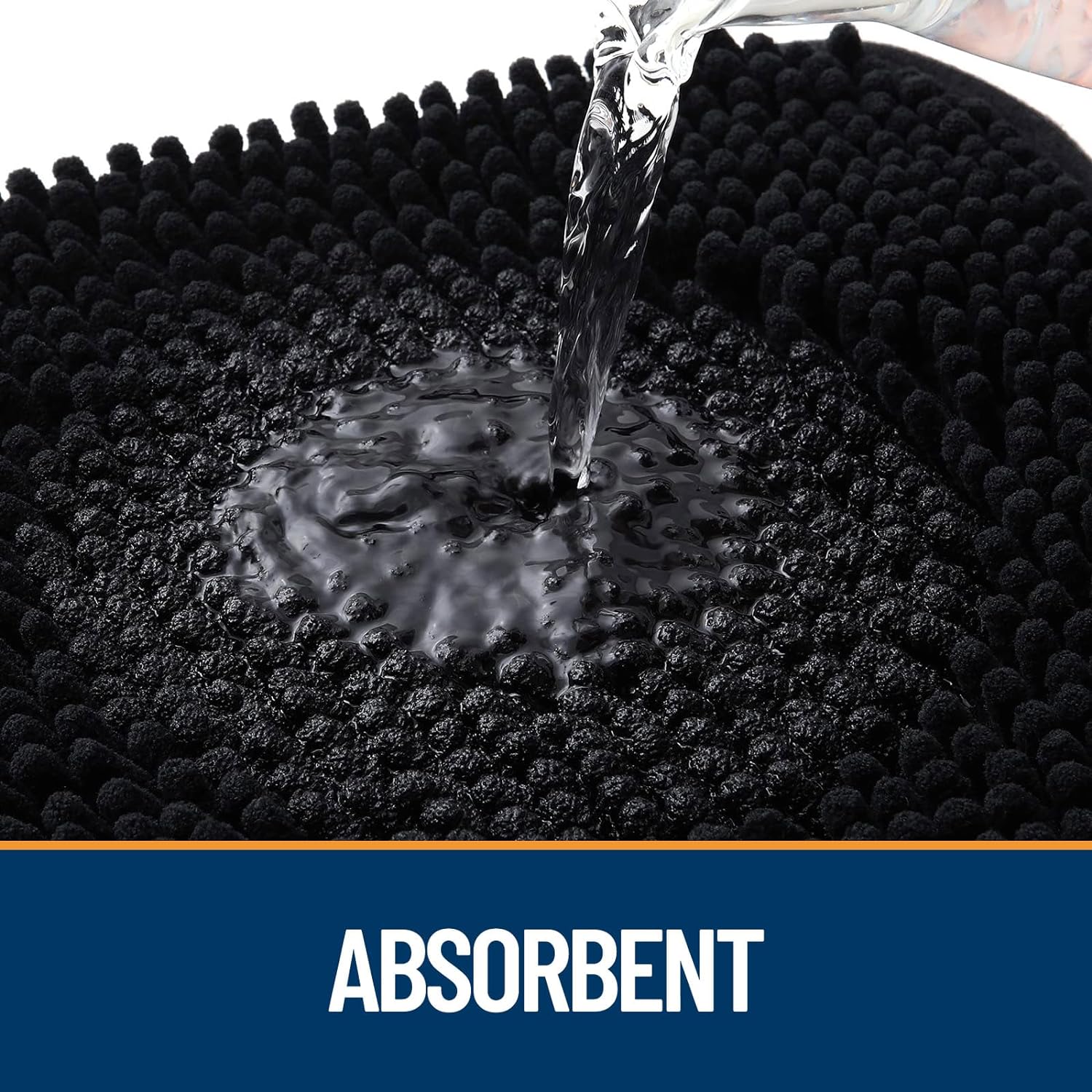 OLANLY Dog Door Mat for Muddy Paws 47x20, Absorbs Moisture and Dirt, Absorbent Non-Slip Washable Doormat, Quick Dry Chenille Mud Mat for Dogs, Entry Indoor Entryway Carpet for Inside Floor, Black