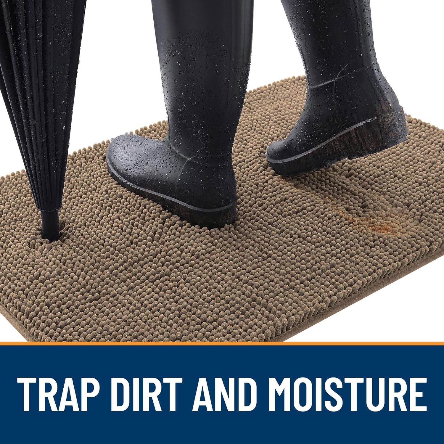 - [ABSORBS MOISTURE AND DIRT] OLANLY indoor dog mat for muddy paws is crafted to efficiently remove dirt and swiftly absorb moisture. With our doormat, your shoes will be instantly clear of any water, dust, grit, muck, sand, sleet, grass, slush, rain, or snow upon entering the house. It's an excellent choice for use as an entryway door mat, a welcoming door mat, or a dirt-trapping mat.