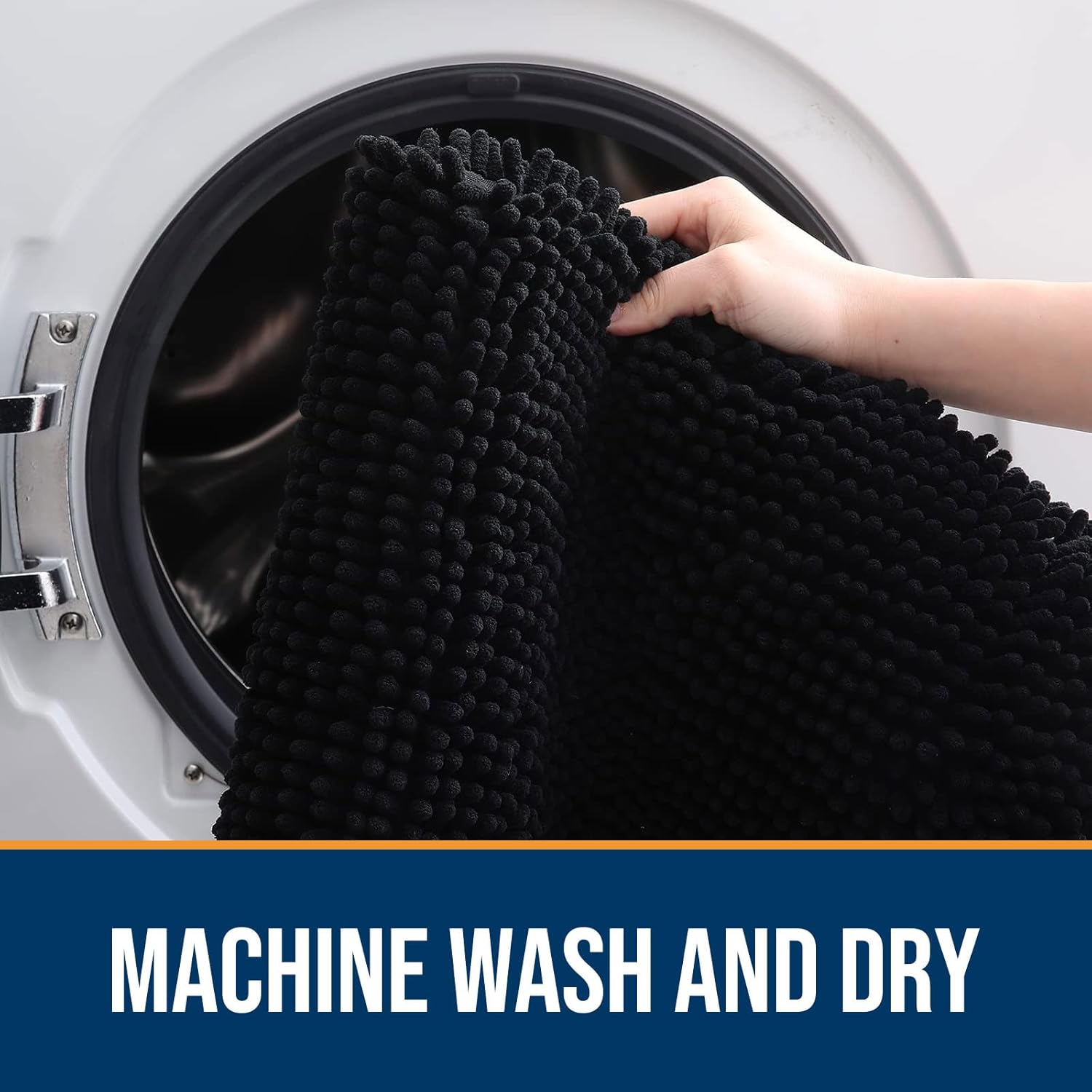 OLANLY Dog Door Mat for Muddy Paws 34x21, Absorbs Moisture and Dirt, Absorbent Non-Slip Washable Doormat, Quick Dry Chenille Mud Mat for Dogs, Entry Indoor Entryway Carpet for Inside Floor, Black