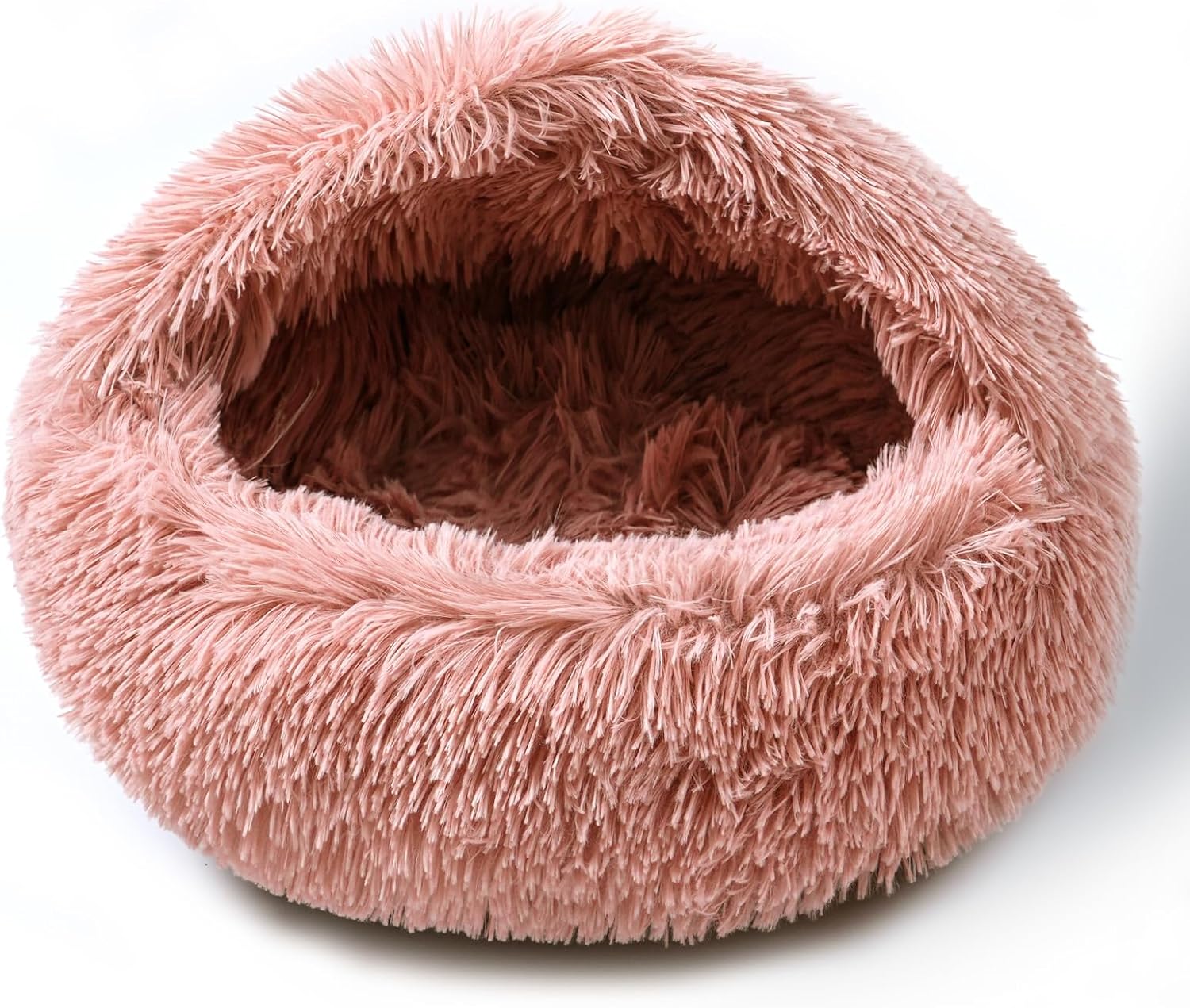 Cat Bed for Indoor Cats, Calming Cozy Cave with Self-Warming Plush, Entire Bed Machine Washable & Anti-Slip Base, Breathable Pet Bed for Small Cats&Dogs All Seasons (Leather Pink, 24 * 24inch)