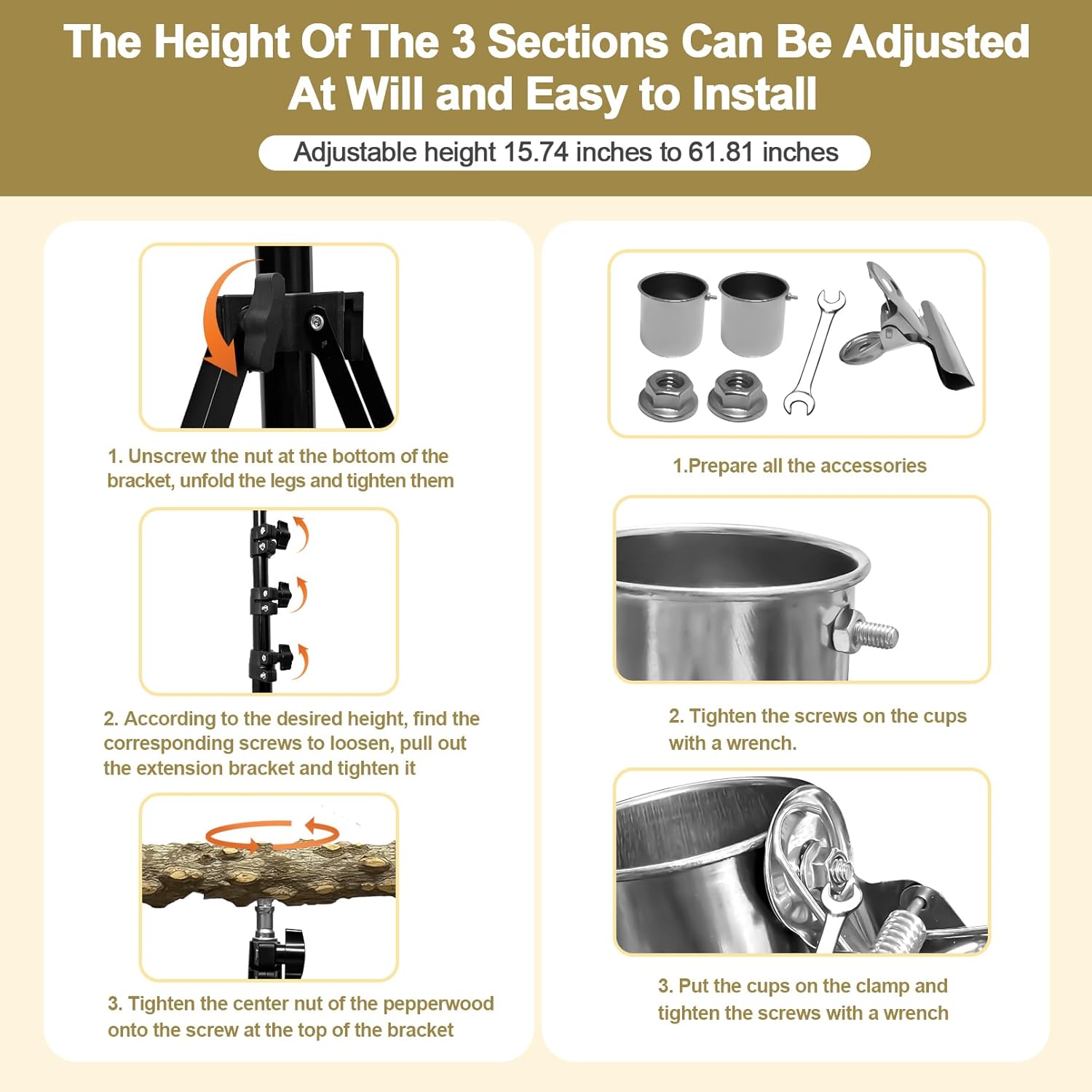 - Convenient to Install and Carry: The bird stand adopts folding design, the space will be reasonably utilized and easy to store, and it is also very light to carry outside