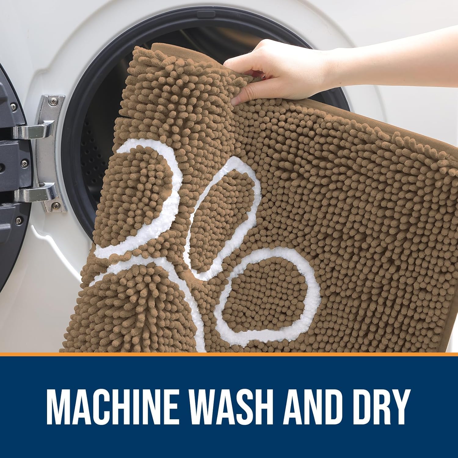 OLANLY Door Mat for Muddy Dog Paws 59x35, Ultra Absorbent Chenille Mud Doormat with Paw Print Design, Non-Slip Washable Doormat for Indoor Entryway, Quick-Dry Pet Bed Mats for Dirty Dogs, Tan