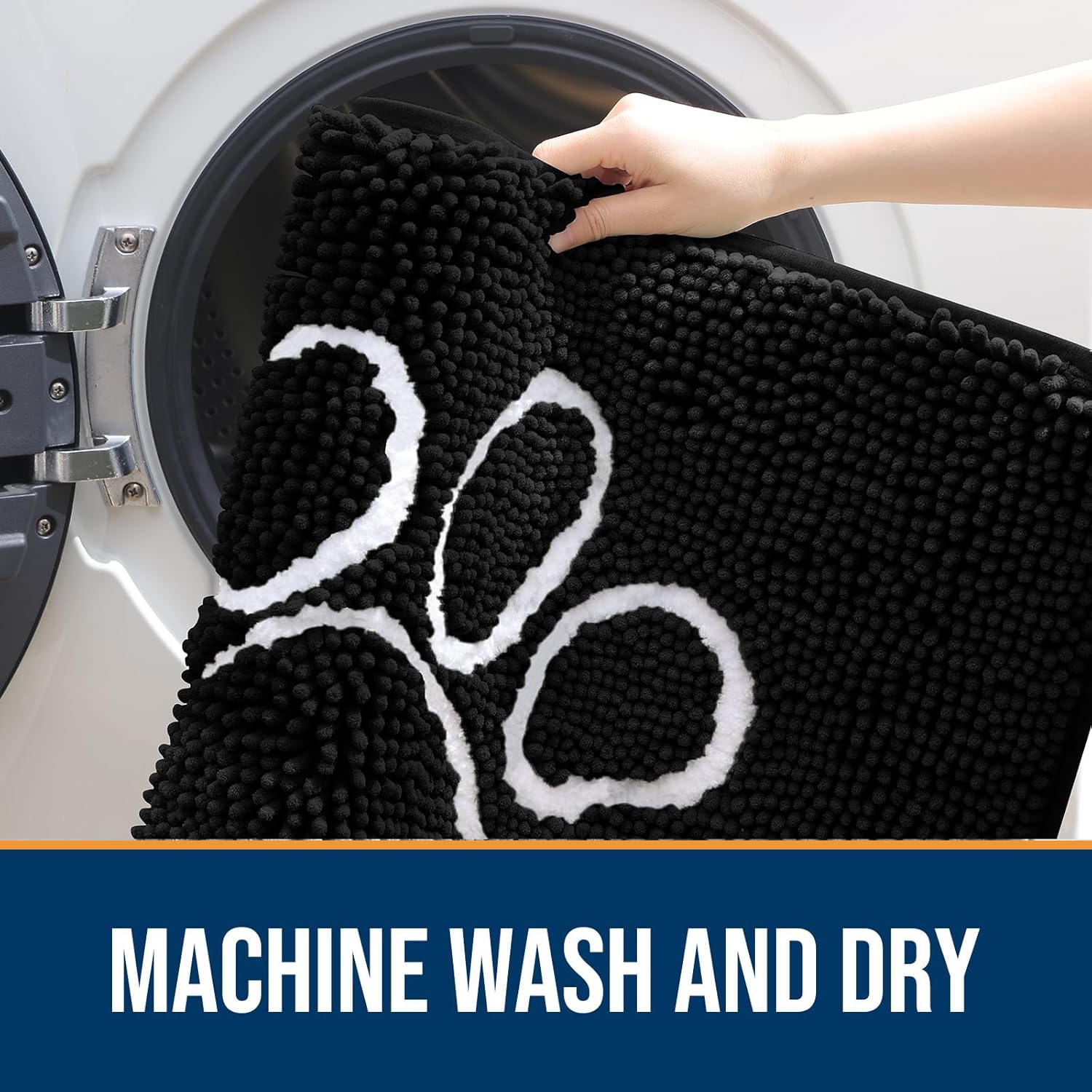 OLANLY Door Mat for Muddy Dog Paws 47x24, Ultra Absorbent Chenille Mud Doormat with Paw Print Design, Non-Slip Washable Doormat for Indoor Entryway, Quick-Dry Pet Bed Mats for Dirty Dogs, Black