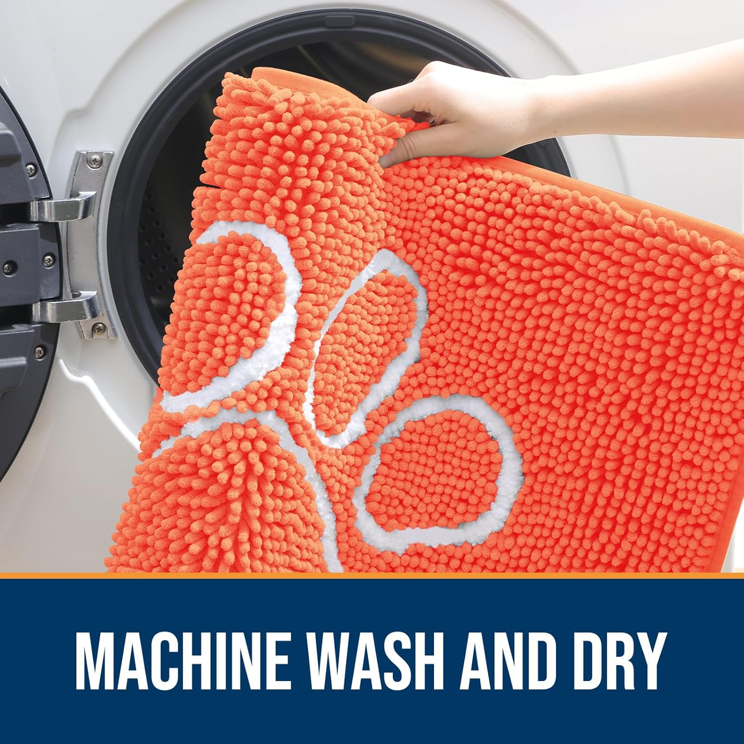 OLANLY Door Mat for Muddy Dog Paws 36x24, Ultra Absorbent Chenille Mud Doormat with Paw Print Design, Non-Slip Washable Doormat for Indoor Entryway, Quick-Dry Pet Bed Mats for Dirty Dogs, Coral