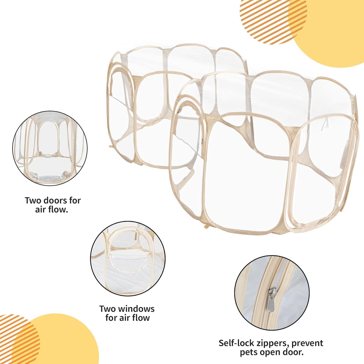 Cold Resistant Cat Playpen PVC Dog Playpen - Portable & Foldable Indoor Outdoor Puppy Playpen - Insulated 2-Room Dog TentCrate Cage Kennel, Playpen for Kitten, Small Animals Play Pen