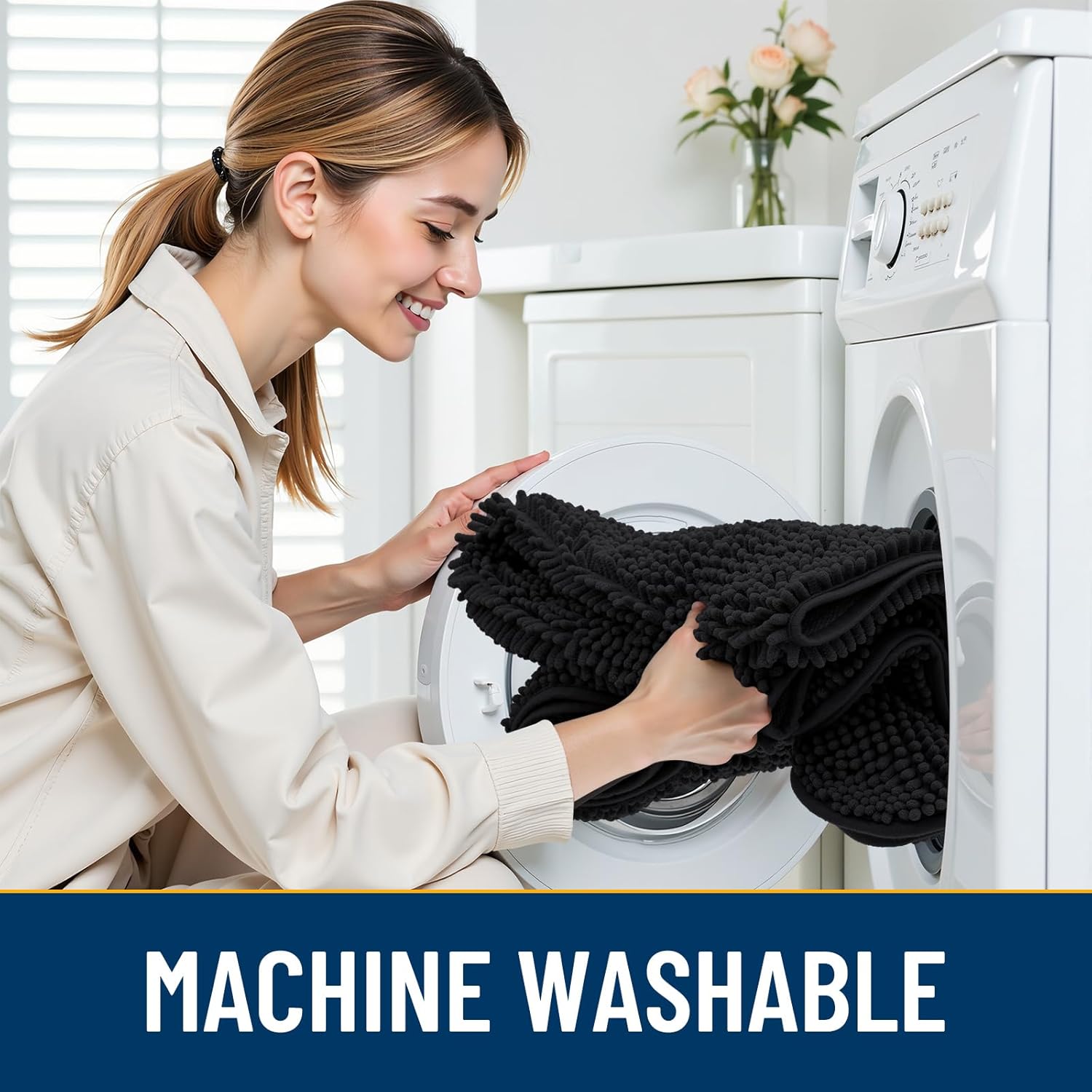 Smiry Dog Door Mat for Muddy Paws 47x32, Absorbs Moisture and Dirt Doormat, Non-Slip Washable Quick Dry Chenille Front Door Mat Indoor Entrance, Entryway Carpet for Inside Floor, Black
