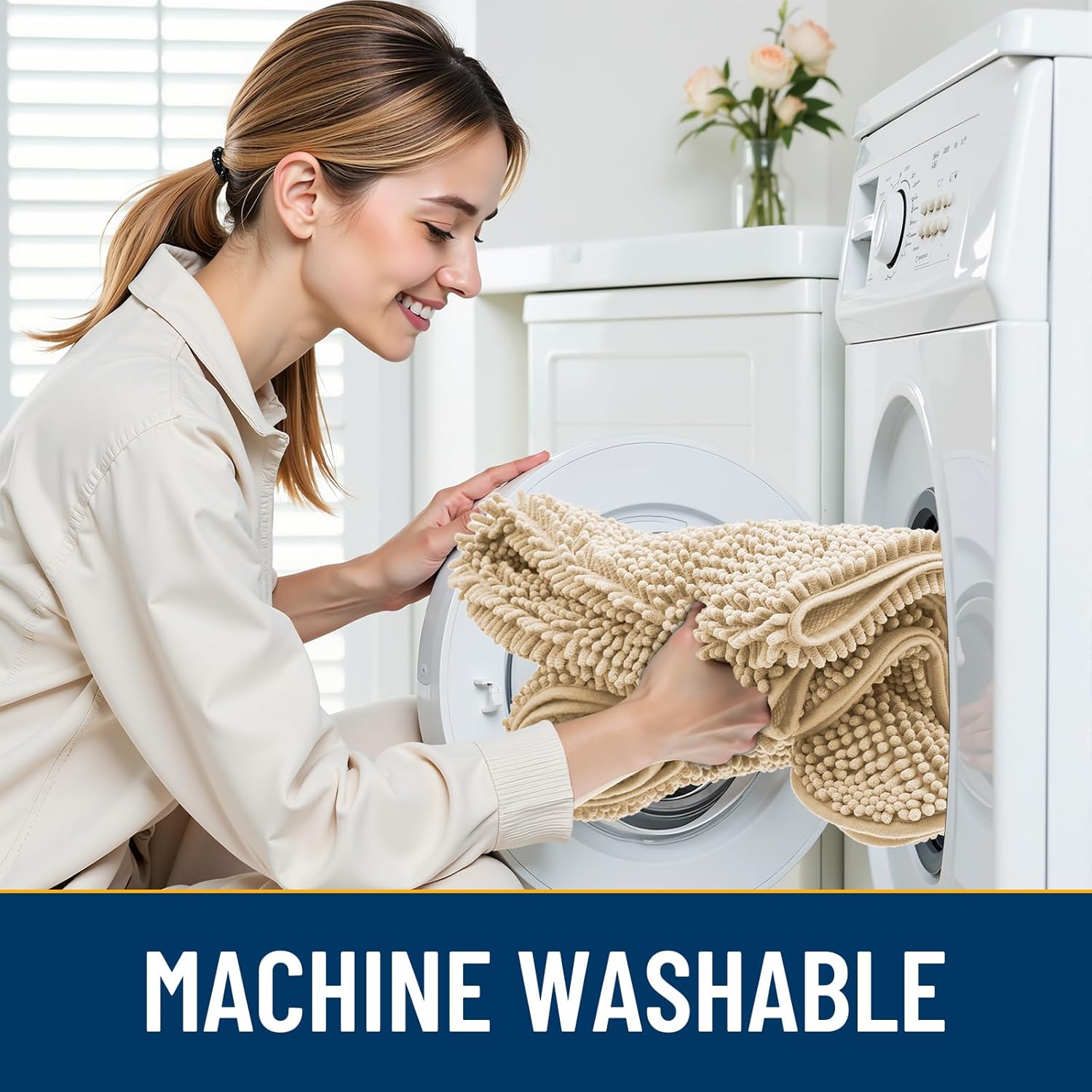 Smiry Dog Door Mat for Muddy Paws 47x24, Absorbs Moisture and Dirt Doormat, Non-Slip Washable Quick Dry Chenille Front Door Mat Indoor Entrance, Entryway Carpet for Inside Floor, Beige
