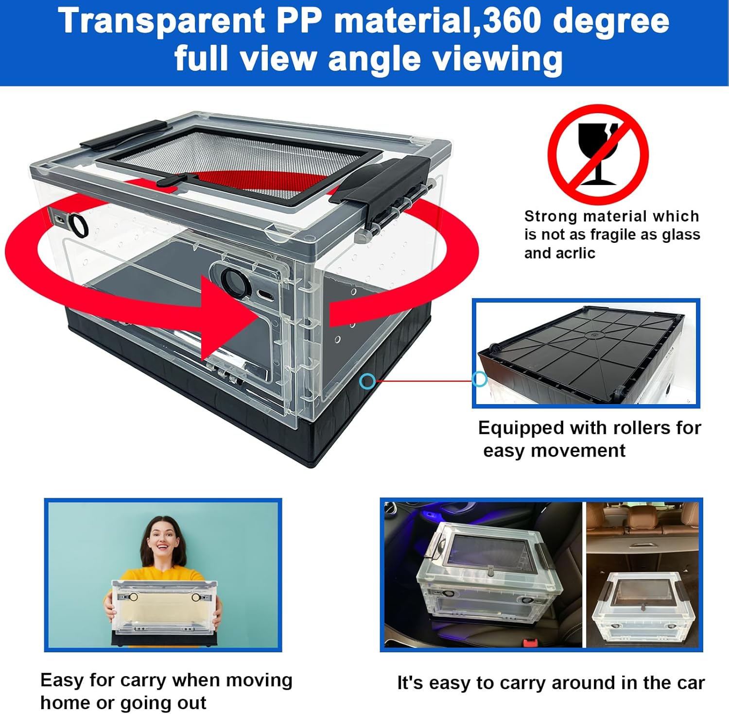 - 【360 degree fll angle viewing】Our pet hamster reptile cage is made of semi transparent PP material, and the pet's state inside the cage can be observed from various angles