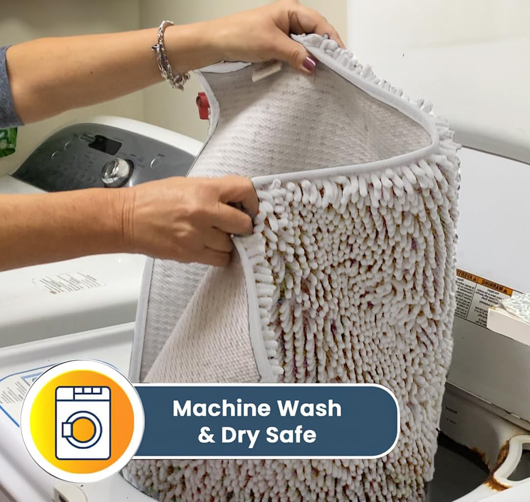- [ ULTRA MOISTURE ABSORBENT ] designed with a thick layer of plush 1-inch chenille that soaks up to 5X its weight for maximum water absorption ideal for trapping liquid from shower floors and wet spills from pets.