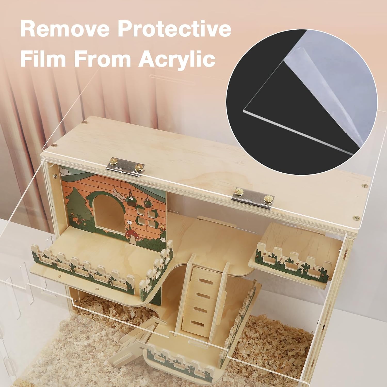 - 【Easy to clean】 The top of the hamster enclosure can be opened, the acrylic plate is also assembled, and the internal stairs and railings are removable, only need to remove the front acrylic plate, take out the accessories inside can be easily cleaned.