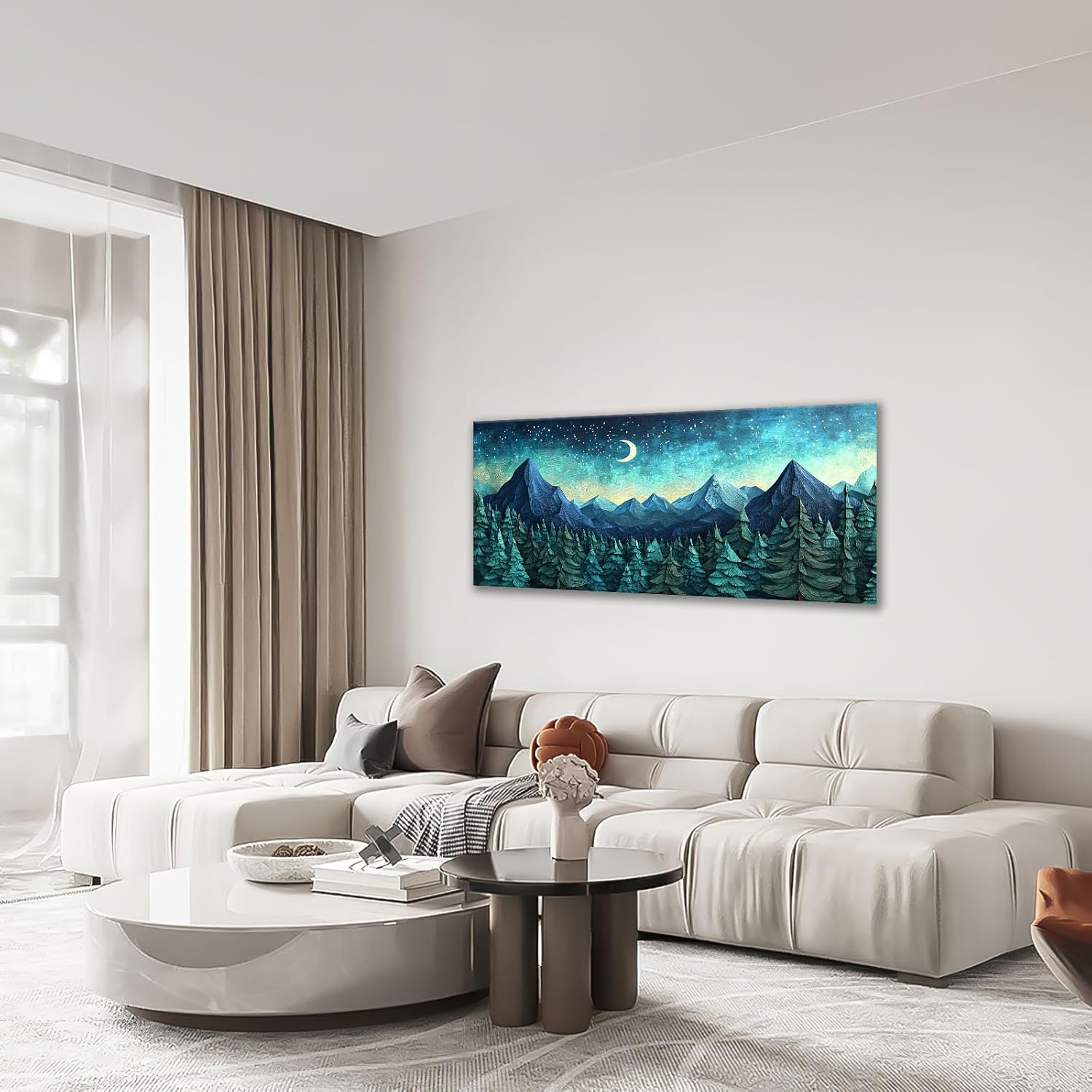 Quorin Abstract Mountain Large Wall Art Forest Moon Starry Night Sky Pictures Nature Landscape Wall Decor Canvas Print Painting Artwork for Bathroom Living Room Bedroom 30"x60"
