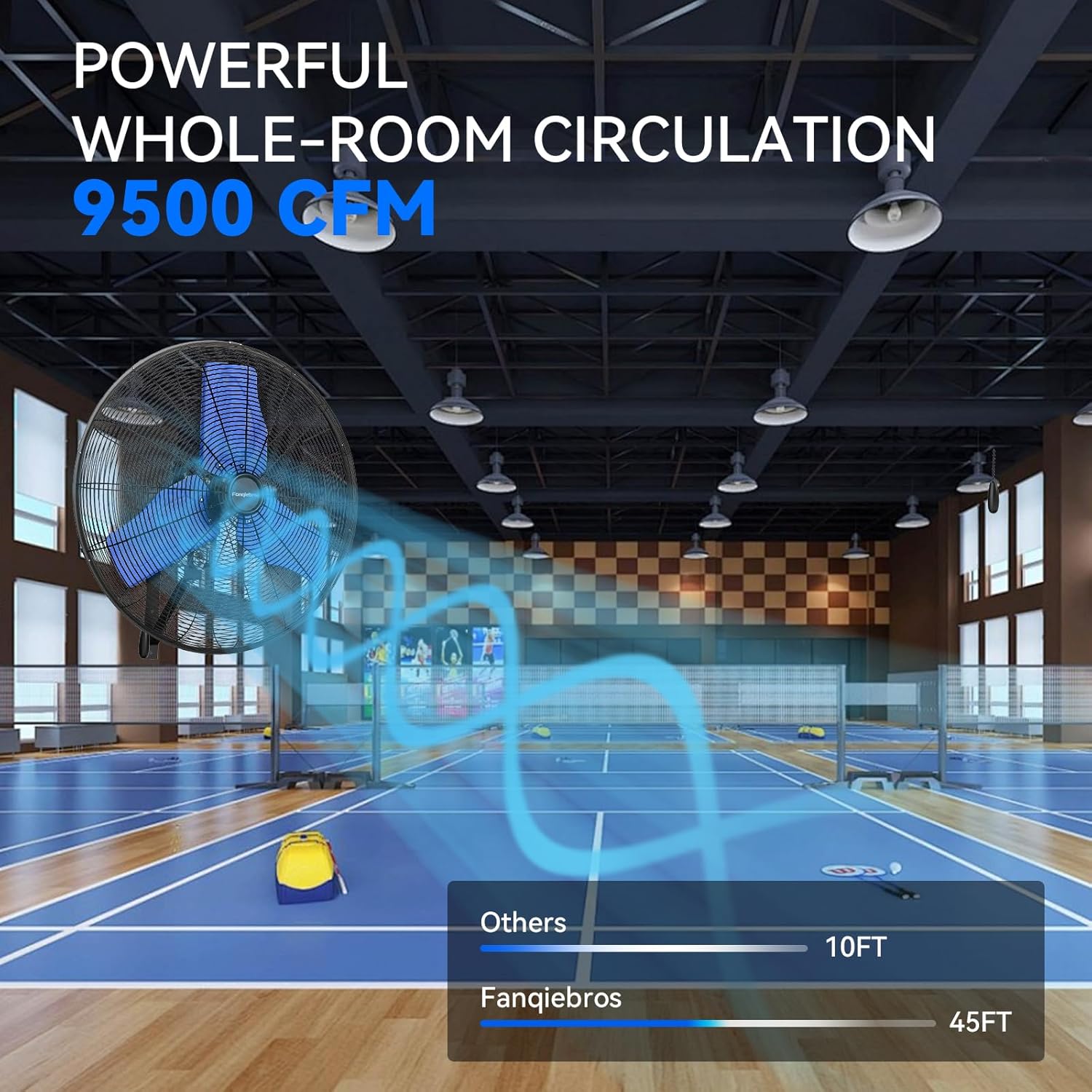 - 𝐋𝐨𝐰-𝐍𝐨𝐢𝐬𝐞 𝐃𝐞𝐬𝐢𝐠𝐧 - The heavy-duty wall fan operates at a high speed of 9500 CFM with a noise level of only 65dB, which is lower than the industry standard, creating a quieter gathering or working environment
