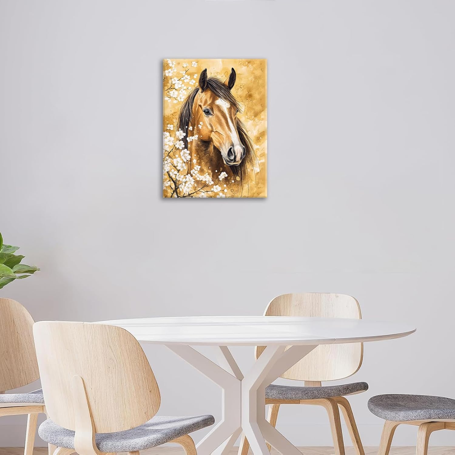 Horse Wall Art Canvas Rustic Horse Wall Decor Prints Framed Painting Farmhouse Flower Pictures Gifts Artwork for Bathroom Living Dining 16"x20"