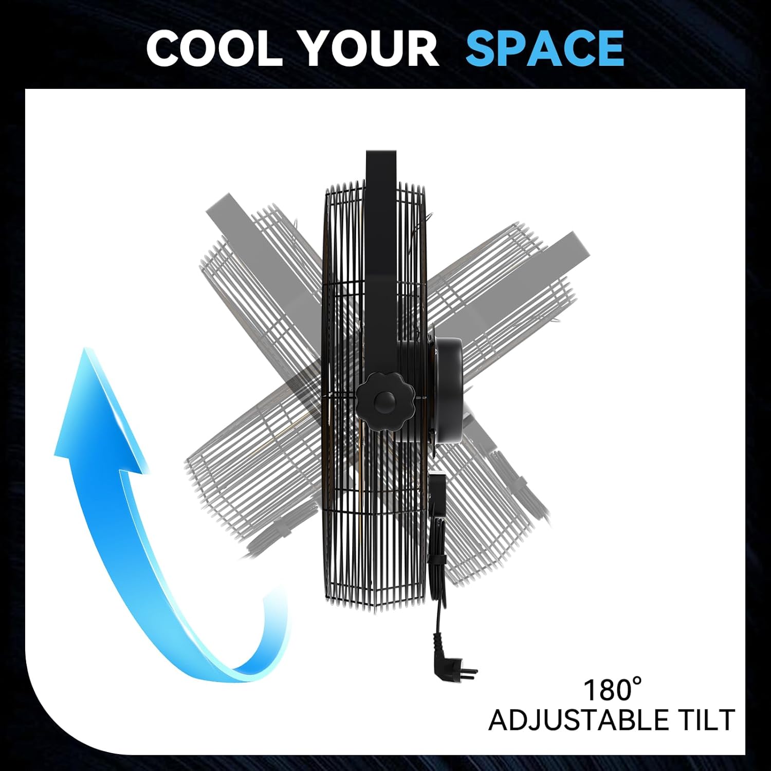 - 𝟏𝟖𝟎°𝐀𝐝𝐣𝐮𝐬𝐭𝐚𝐛𝐥𝐞 𝐓𝐢𝐥𝐭𝐢𝐧𝐠 - High velocity wall mount fan can achieve all-round wind direction adjustment to ensure air circulation without dead angles, so that you can enjoy coolness and comfort at any angle