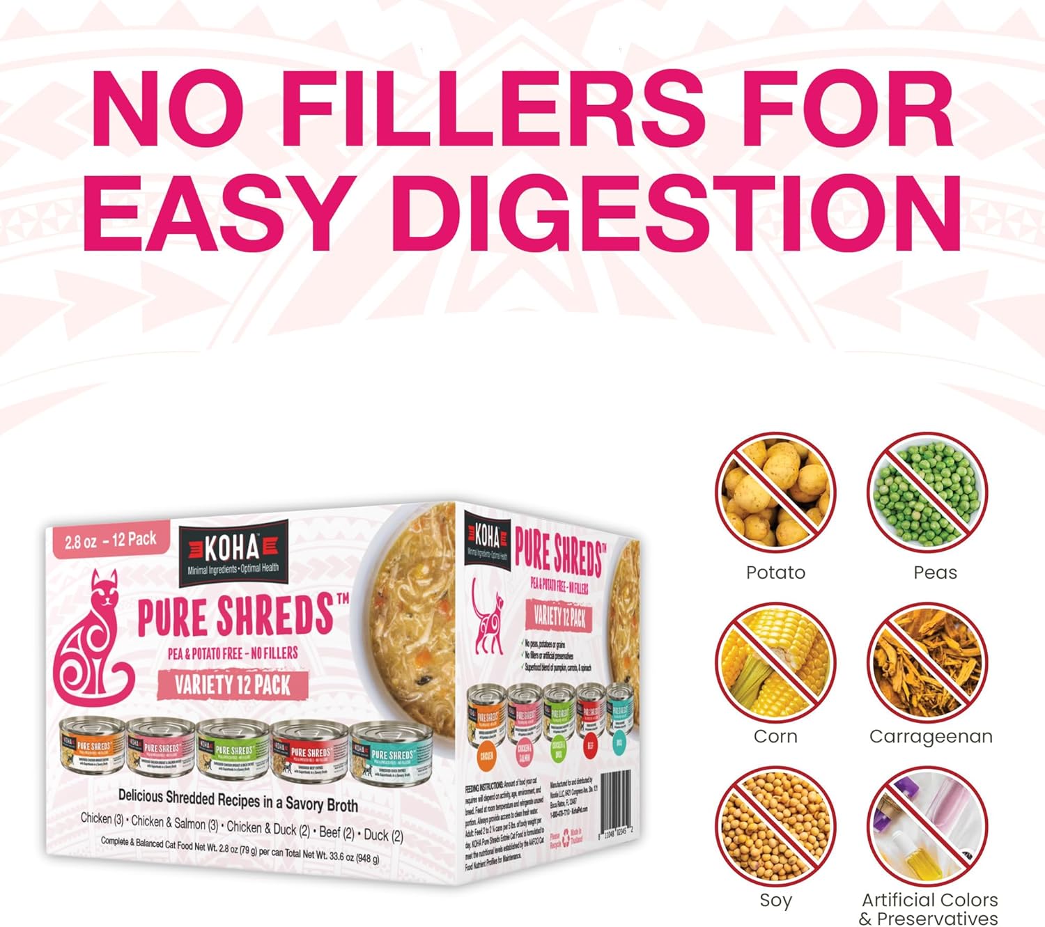 • NO FILLERS: KOHA Pure Shreds are free from fillers like potatoes, peas, corn, soy, or artificial ingredients.