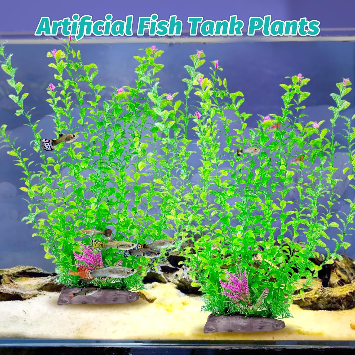 - TALL AQUARIUM PLANTS EASY TO MAINTAIN : Aquarium plants plastic do not require specialized lighting, fertilizers or carbon dioxide. Compared to real plants, large aquarium plant is very easy to clean, saving time and effort and eliminating the hassle of maintenance. These fish tank plants for decorations look lifelike and can be used for a long time, making it easy for you to enjoy the wonders of the aquarium world. Artificial aquarium plants size: 20.4 inches (H), ceramic base: 5.9 × 3.1 inches. 2 pcs artificial aquarium plant to make your aquarium vibrant and more beautiful