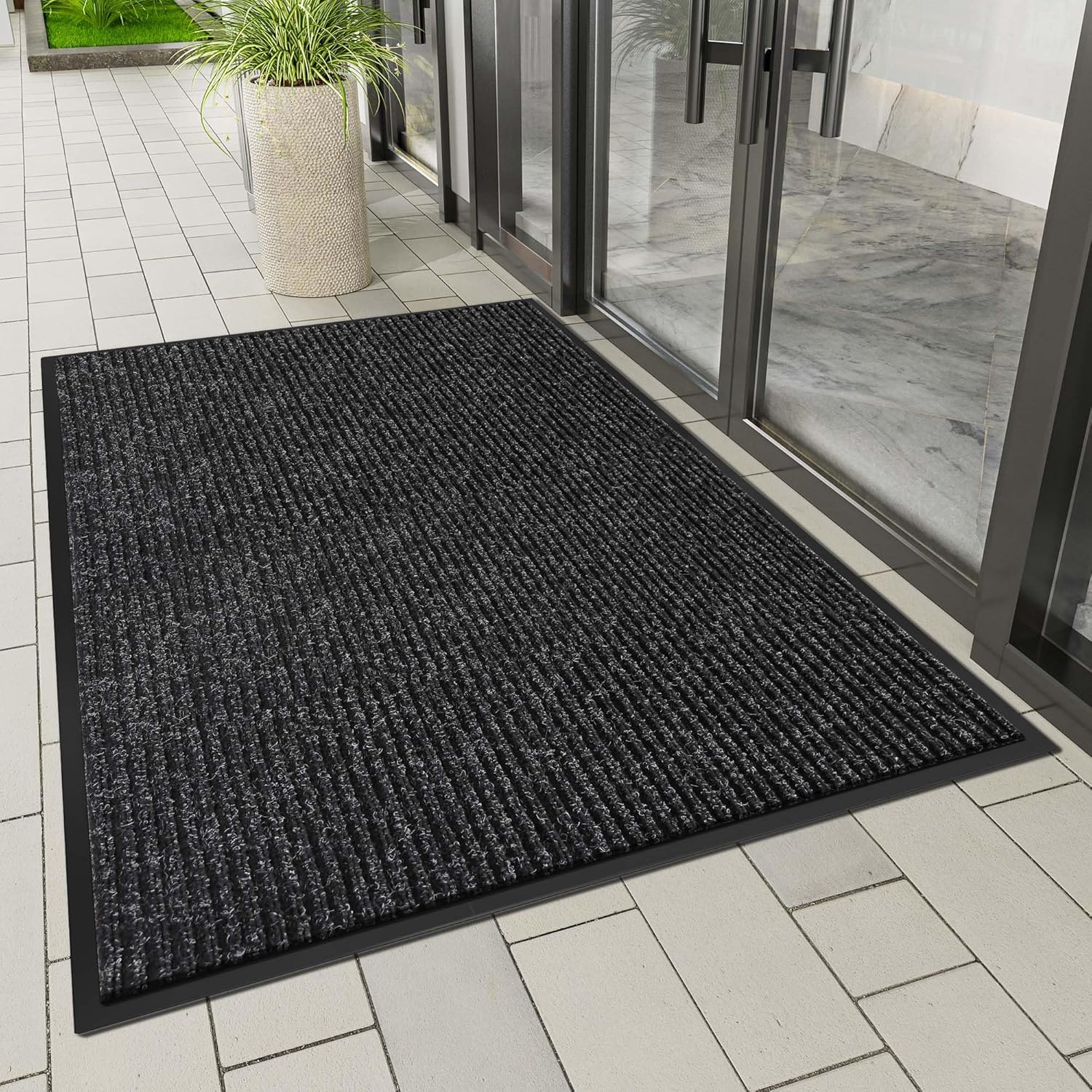 Indoor Outdoor Door Mat, 4' x 2' Doormat for Entryway, Rubber Backing Non Slip Front Door Mat Outside Entrance, Super Absorbent Commercial Floor Mat for Home Office, Black