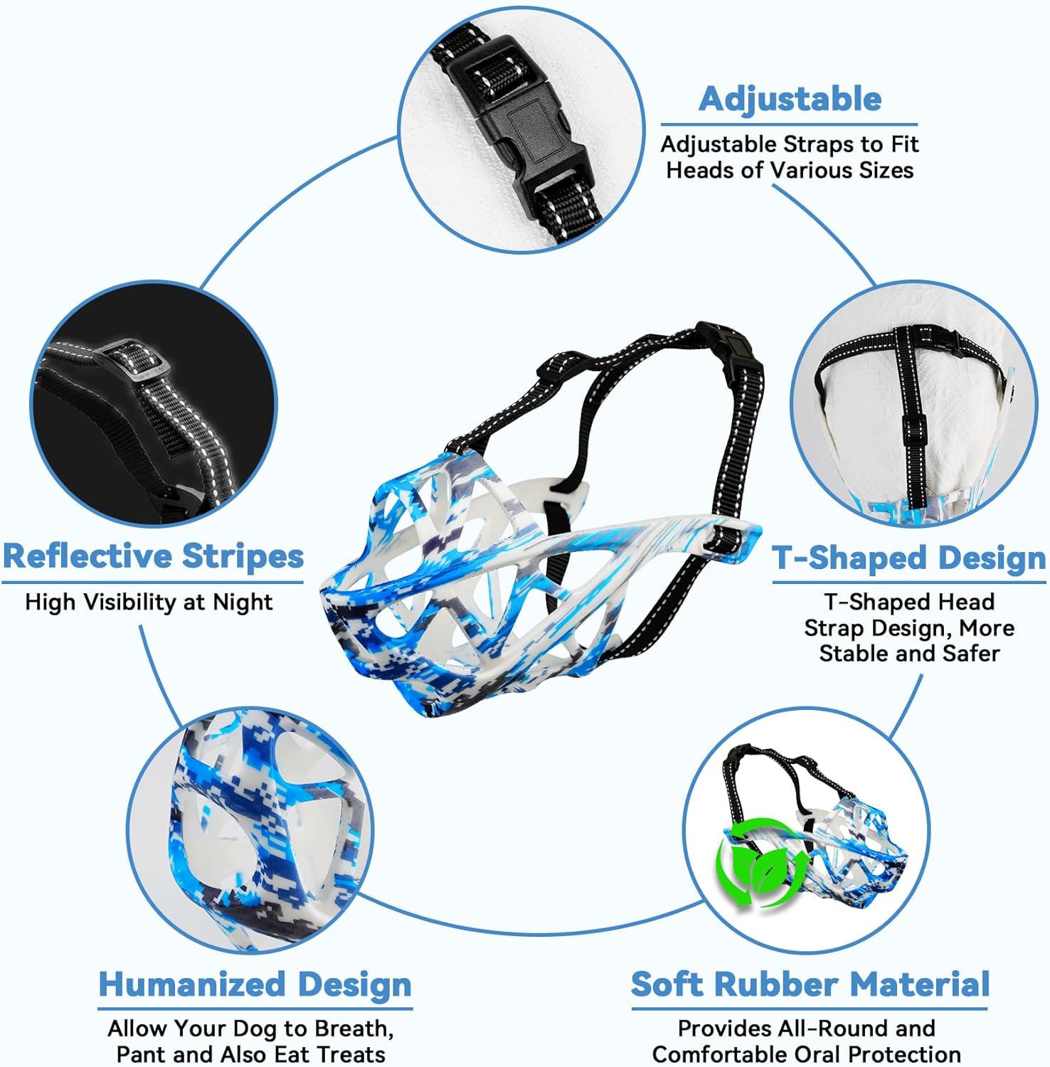 Dog Muzzle for Large Dogs, Breathable Basket Muzzles for Small, Medium and X-Large Aggressive Dog, Allows Panting Drinking, Suitable for Grooming Trimming Training (Camouflage Blue, S)