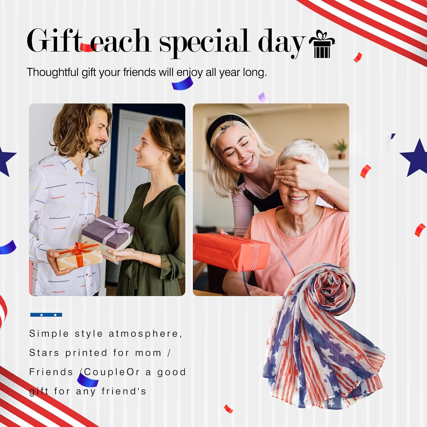 - Patriotic Scarf for Women Size:Our oversized scarf size is 70x33 inches(180cmx85cm).This is a great idea for gifts! Bring beauty and warmth to those you love,unique beautiful gifts for women