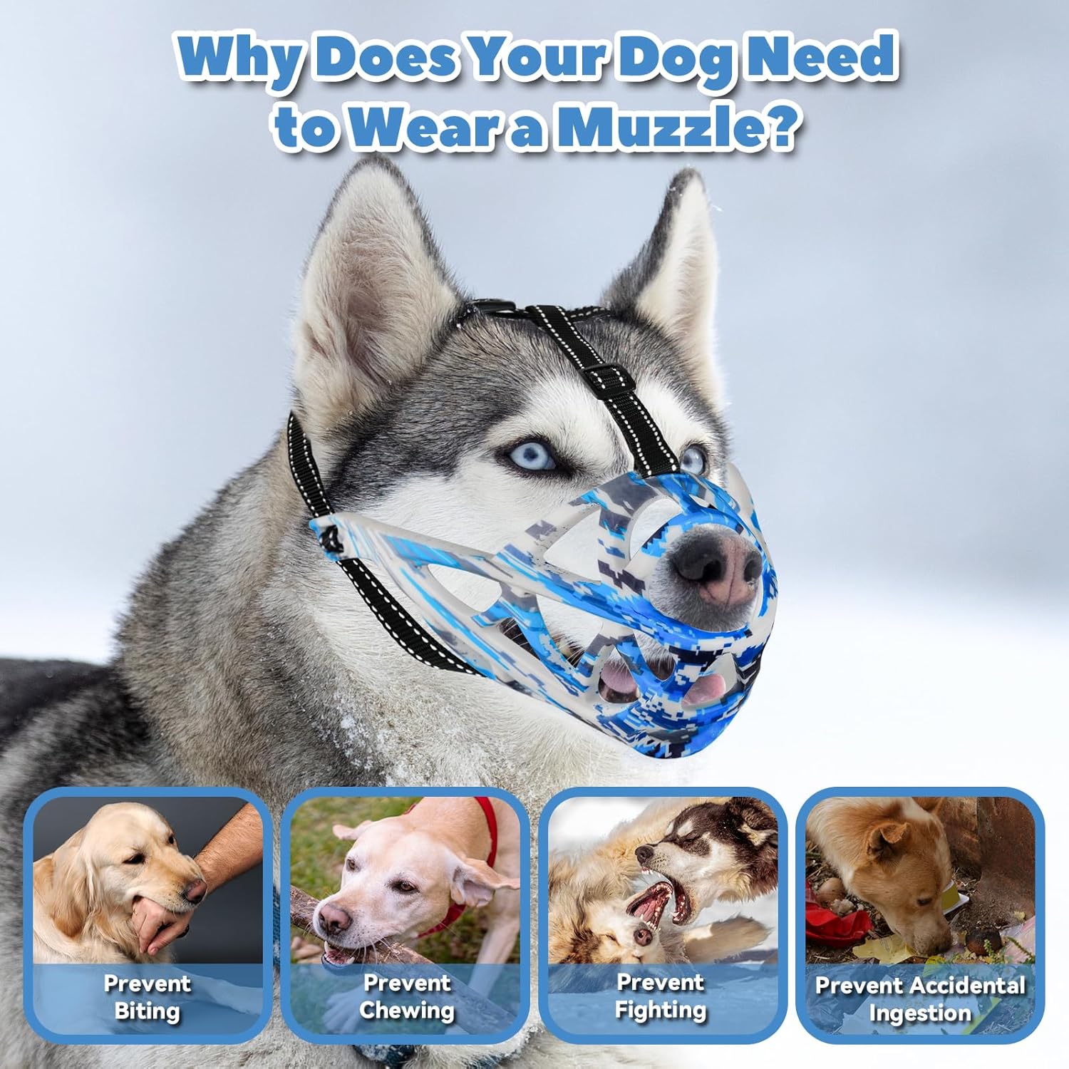 Dog Muzzle for Large Dogs, Medium and X-Large Aggressive Dog, Breathable Basket Muzzles, Suitable for Grooming Trimming Training, Allows Panting Drinking (Camouflage Blue, L)