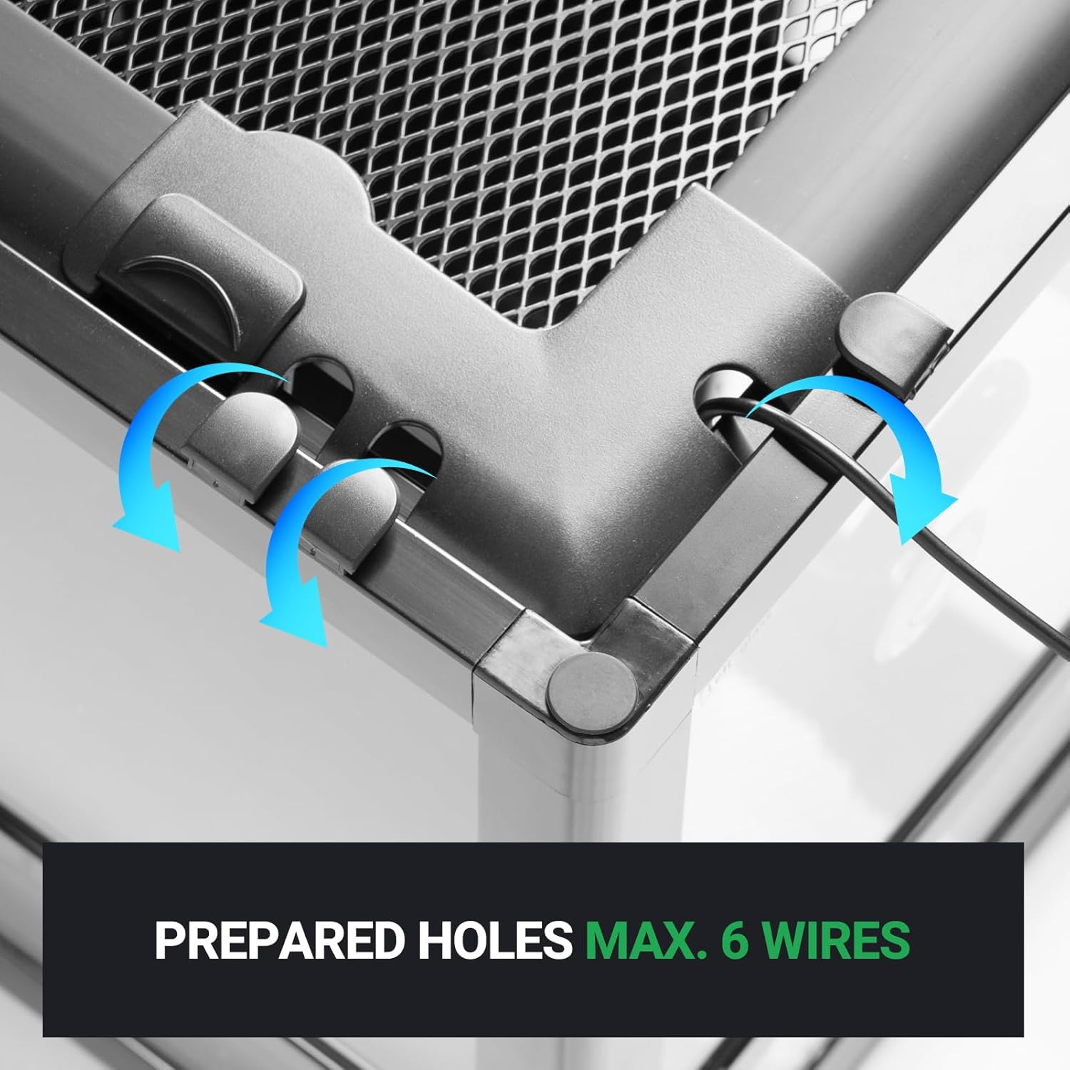 - Ventilated Screen Top with Cable port: Mesh top ensures optimal airflow and ventilation crucial for reptile health. Support various lighting fixtures (heat lamp, UVB, basking lamps). cable ports for tidy wire management.