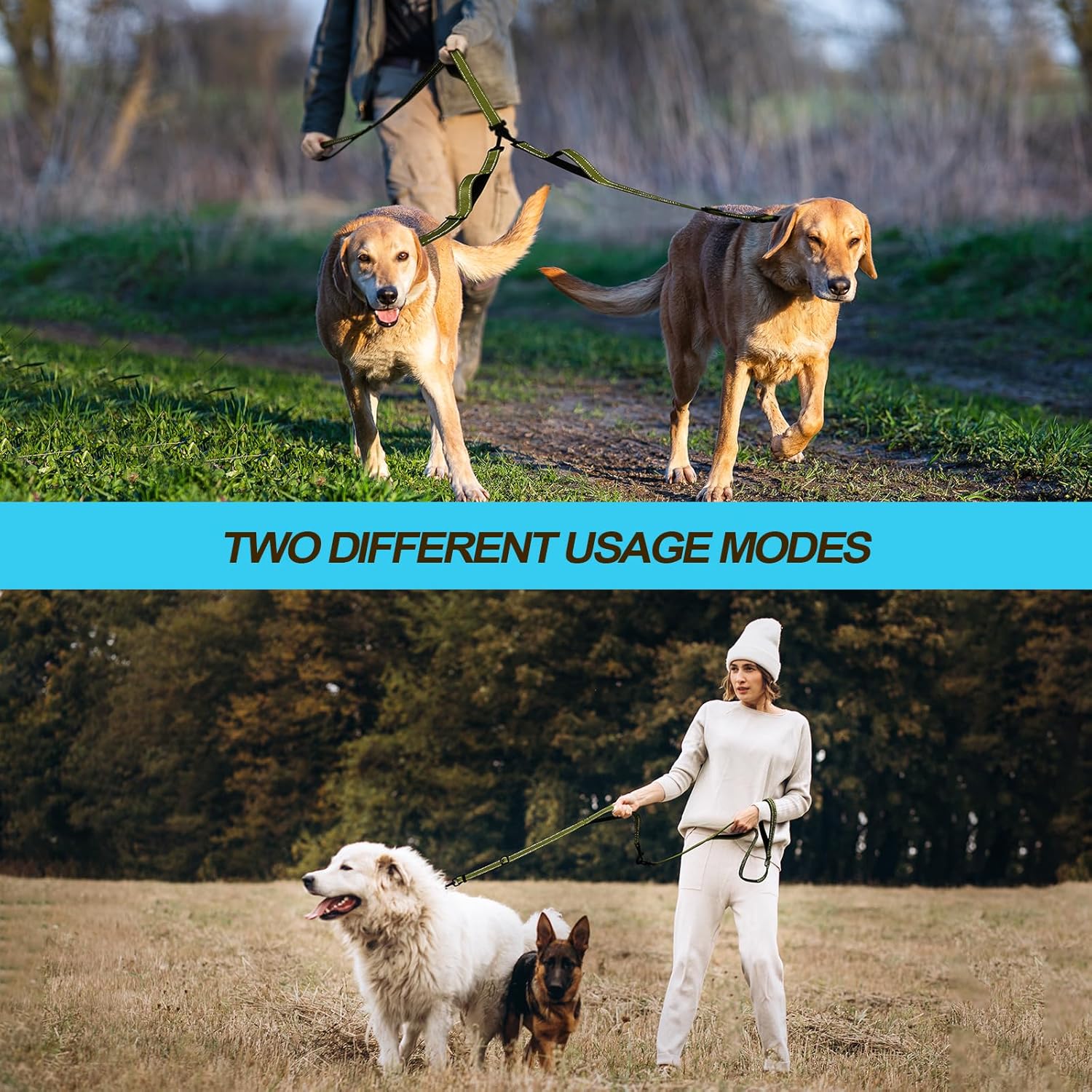 • No Tangle Double Dog Leash: 360° swivel clasps help to keep your dogs from getting tangled together. No need to worry about getting twisted two dog leash when dogs switch sides