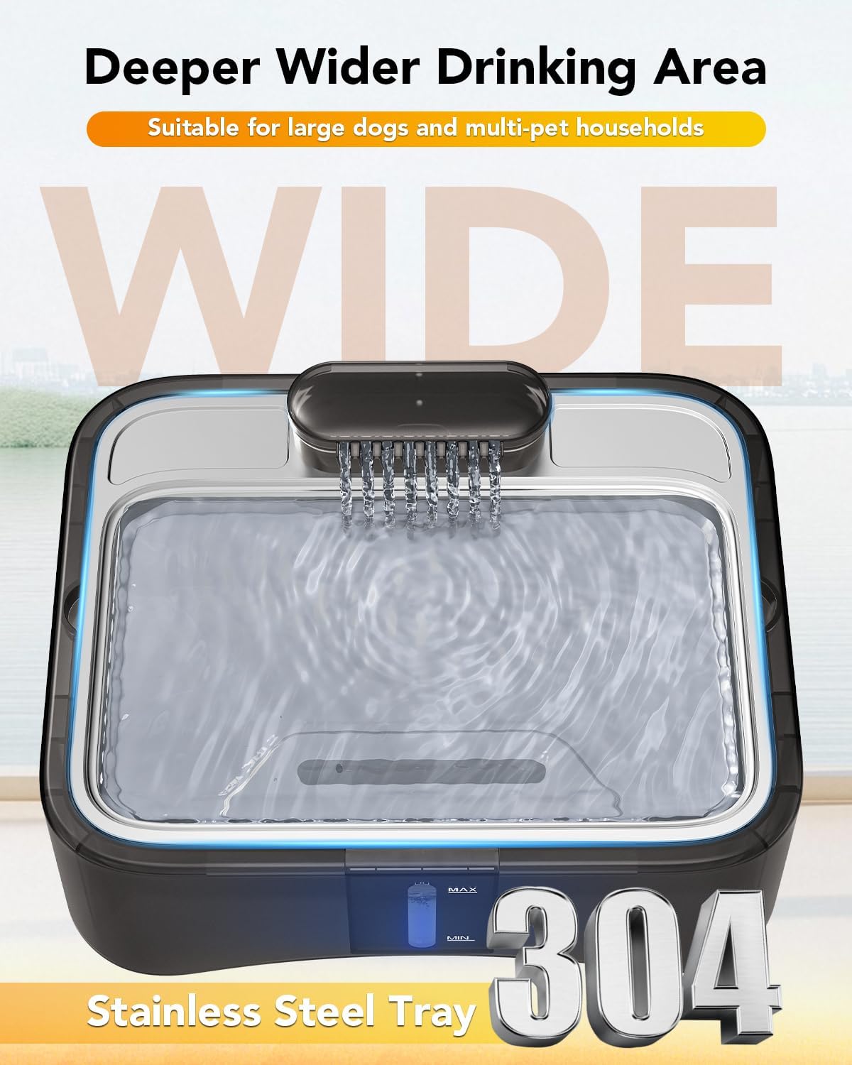 - 304 Stainless Steel Wider Drinking Tray: The part that comes into contact with your dog's mouth is made of 304 stainless steel, ensuring durability and easy cleaning. Its wider opening effectively prevents splashing, keeping your floors dry and tidy
