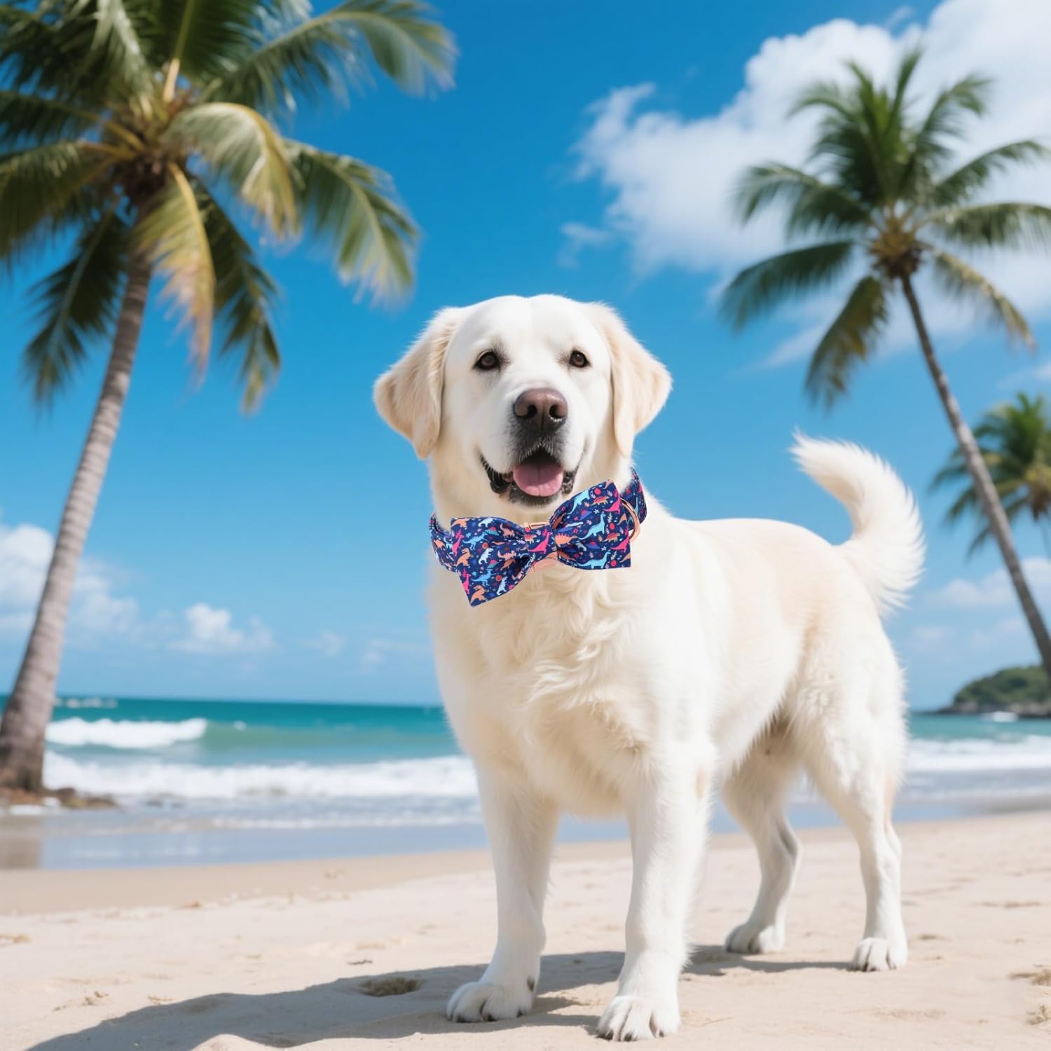 Unique style paws Cartoon Dog Collar with Bow Spring Summer Collar with Flower Dinosaur Park for Small Medium Large Boys Girls Dogs