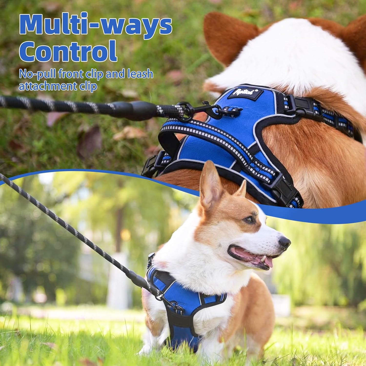 PUPTECK No Pull Dog Harness Medium Sized, Adjustable Reflective Dog Harness with Handle Easy Control, Comfortable Soft Padded Pet Vest Harness for Medium Dogs, Blue M