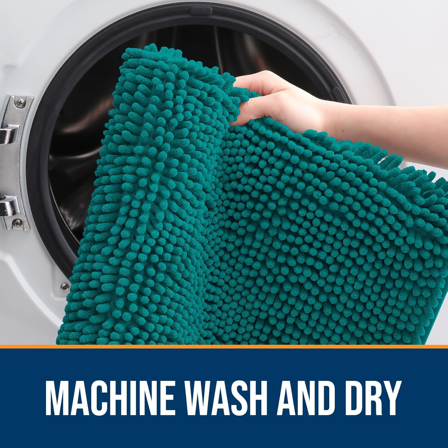 OLANLY Dog Door Mat for Muddy Paws 30x20, Absorbs Moisture and Dirt, Absorbent Non-Slip Washable Doormat, Quick Dry Chenille Mud Mat for Dogs, Entry Indoor Entryway Carpet for Inside Floor, Lake Blue