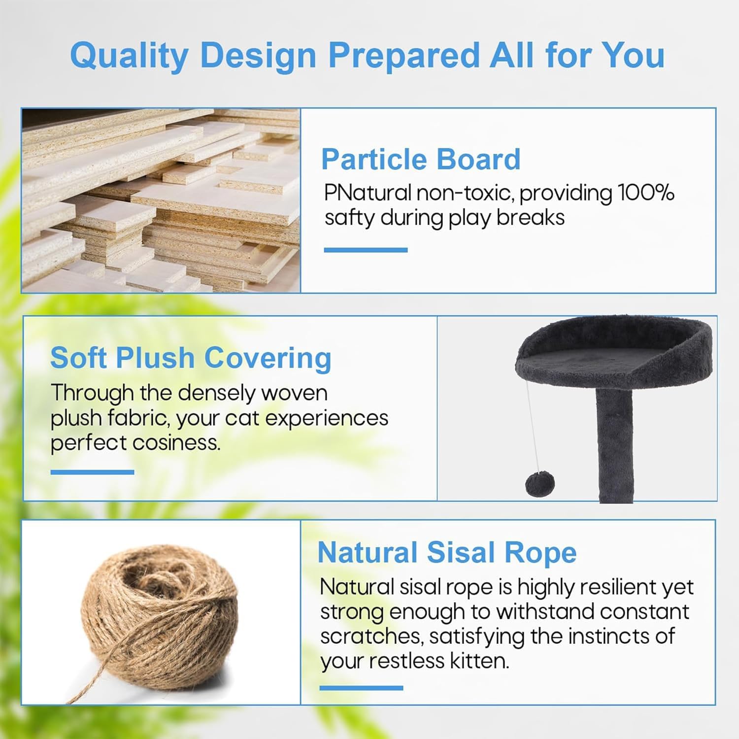 - 🐱 【Simple assembly】We understand that convenience is important to pet owners, which is why we made our cat tree simple to assemble in a matter of minutes. You can quickly provide your kitties a stimulating environment by following the simple setup instructions and using the available tools. Please feel free to contact us with any questions you may have about our cat tree, and we will respond to you within a day! You can quickly provide your kitties a stimulating environment by following the simple setup instructions and using the available tools.