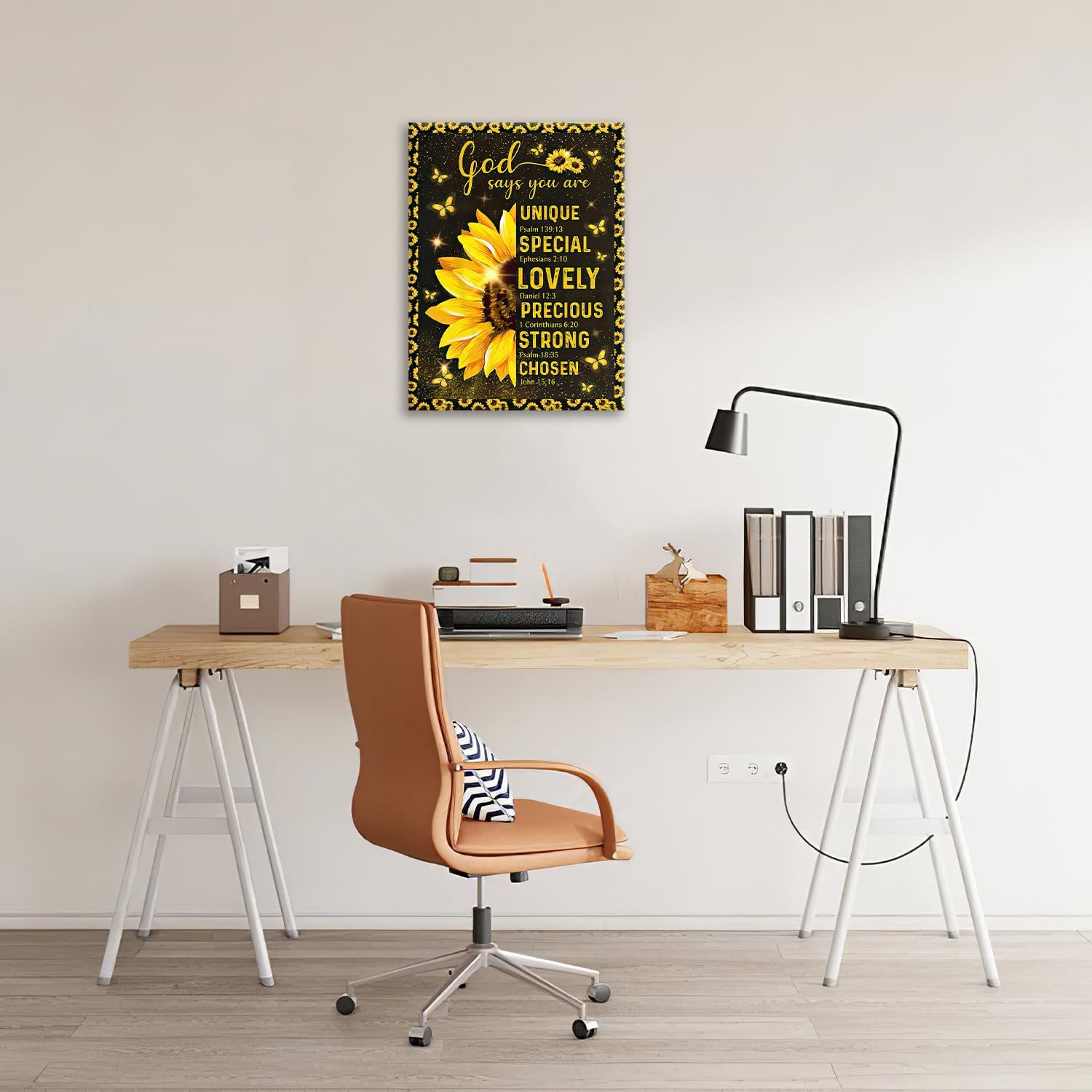 Christian Sunflower Bathroom Pictures Wall Art, Bible Verse Bathroom Wall Decor for Bedroom Office Wall Decorations for Bathroom Living Room Painting Artwork Modern Poster Prints 20"L x 16"W
