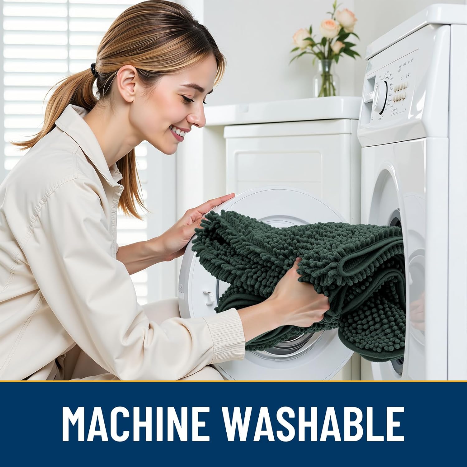 Smiry Dog Door Mat for Muddy Paws 48x30, Absorbs Moisture and Dirt Doormat, Non-Slip Washable Quick Dry Chenille Front Door Mat Indoor Entrance, Entryway Carpet for Inside Floor, Green