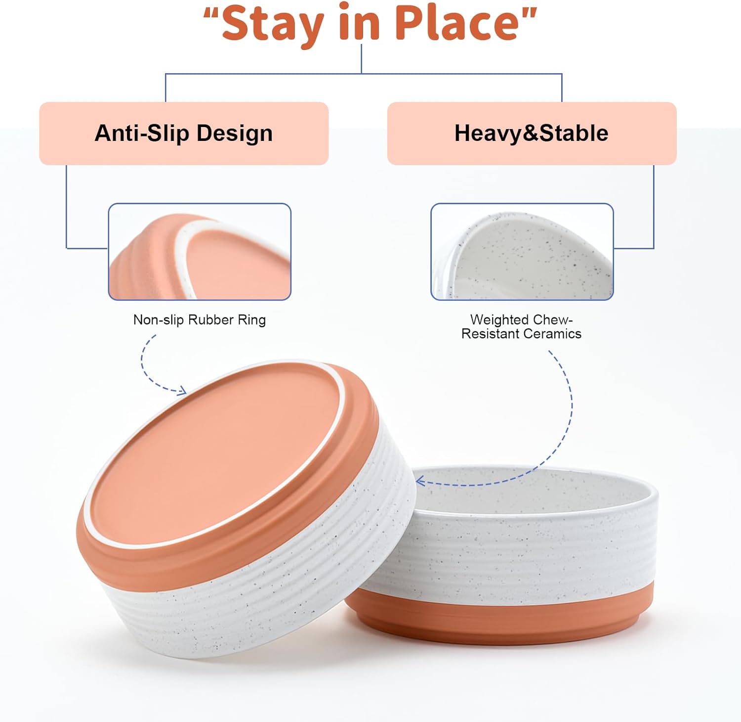 • Heavyweight, Chew‑Resistant Ceramic – Thick and Durable ceramic delivers the heft needed to prevent dragging, tipping, and the clanging noise common like other stainless bowls, while the smooth, lead‑free glaze discourages chewing and stands up to daily use