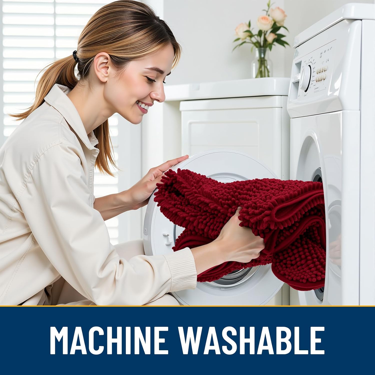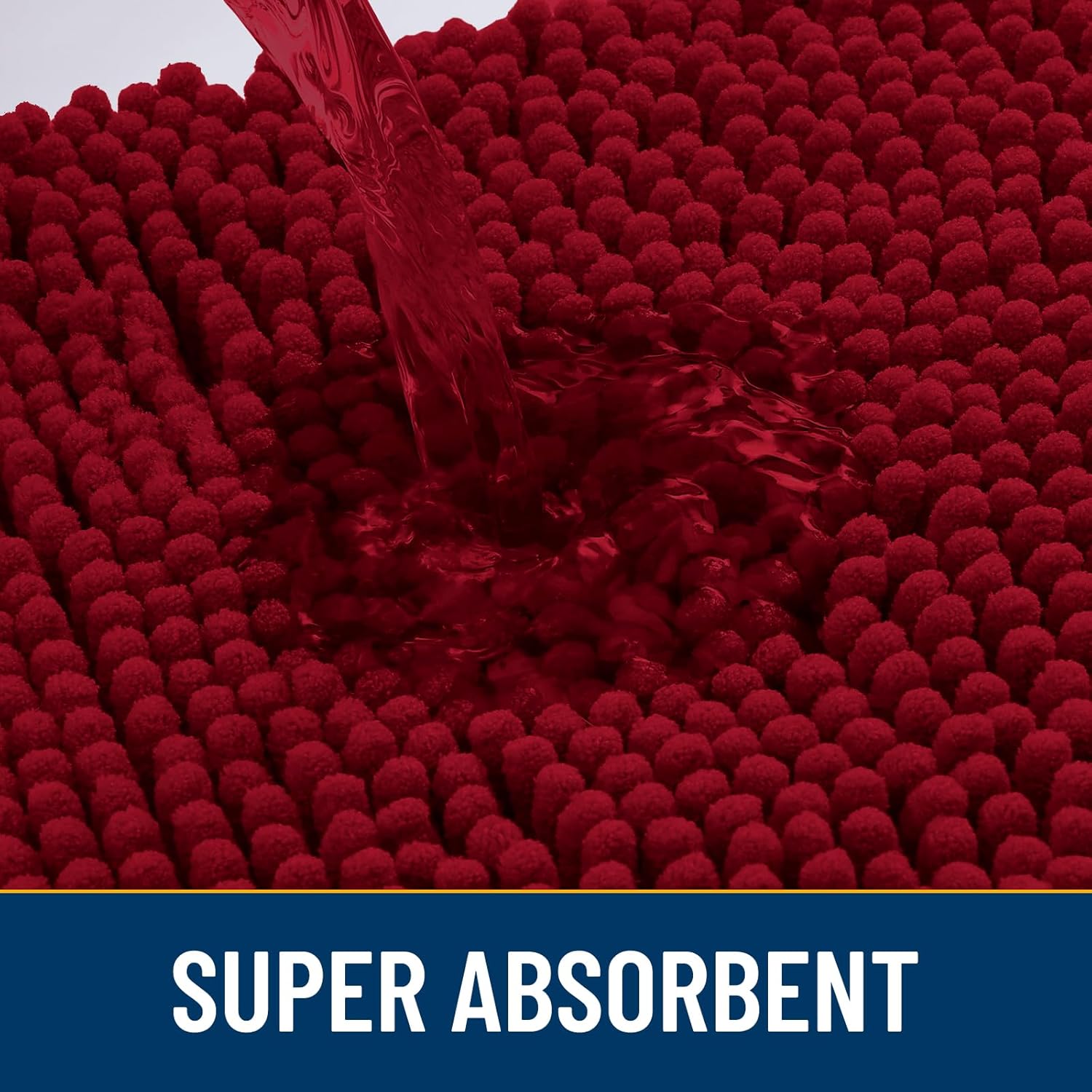 Smiry Dog Door Mat for Muddy Paws 30x20, Absorbs Moisture and Dirt Doormat, Non-Slip Washable Quick Dry Chenille Front Door Mat Indoor Entrance, Entryway Carpet for Inside Floor, Red