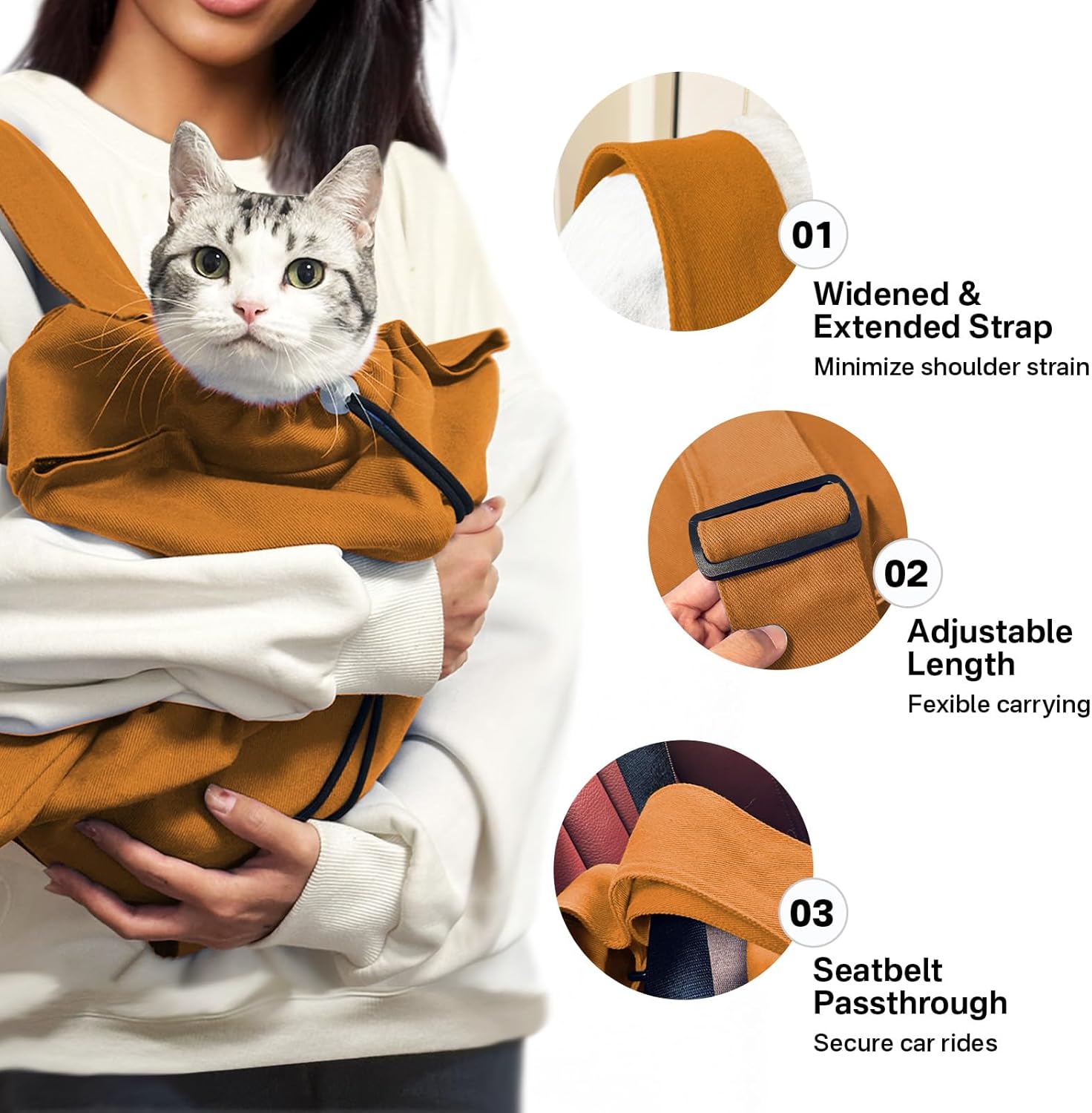 [Cozy Travel] Cat Carrier Pouch, Soft Sided Cat Sling Bag for Small Medium Cats, Carrying Sack, Restraint for Nail Trimming, Grooming,Caramel Small Upgrade