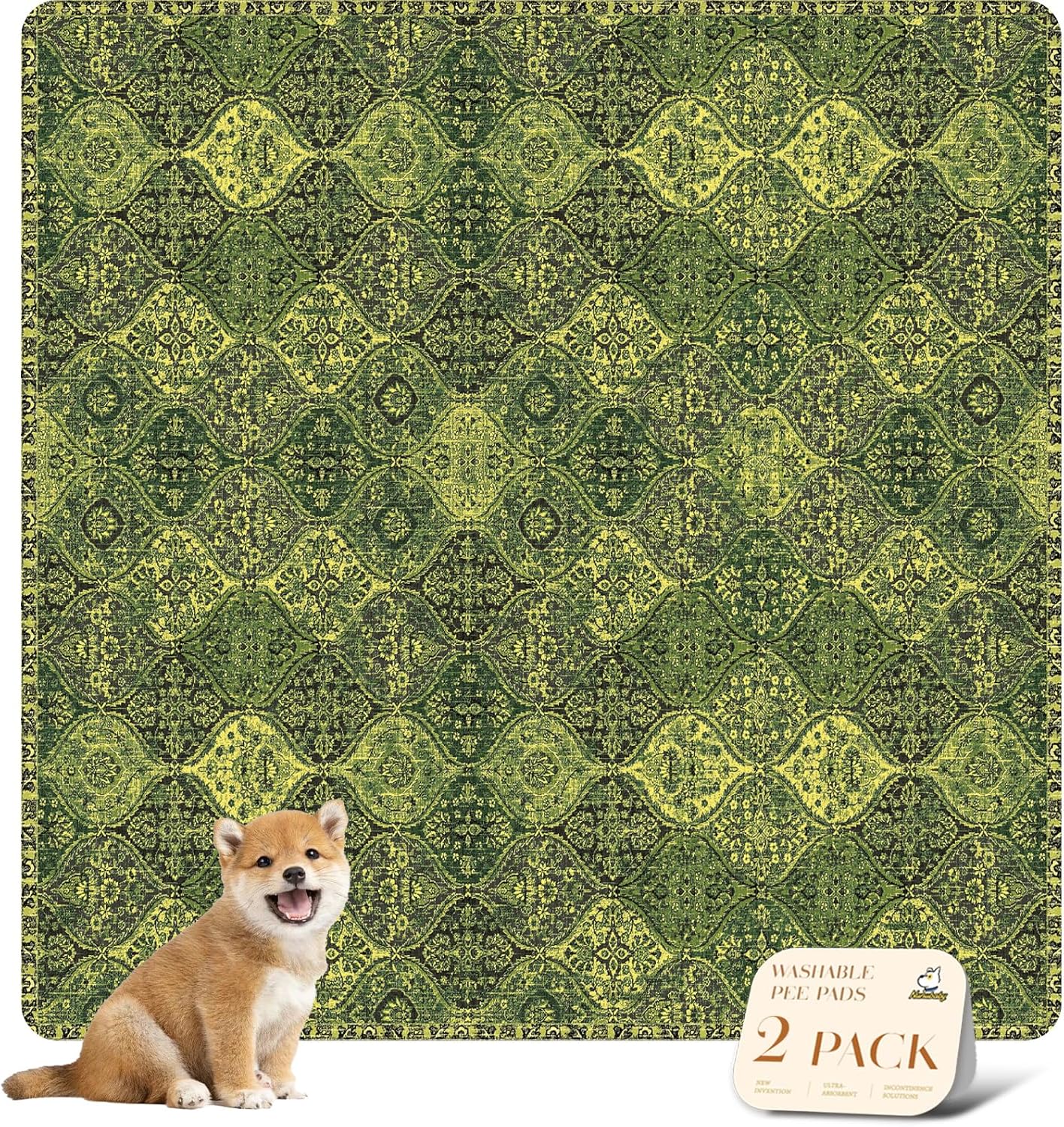 nunubaby Washable Pee Pads for Dogs, Stylish, Non-Slip and Leak-Proof Pee Pads. Reusable Potty Pads for Dogs for Crates and Floors.(Green/Multi, 54" x54")