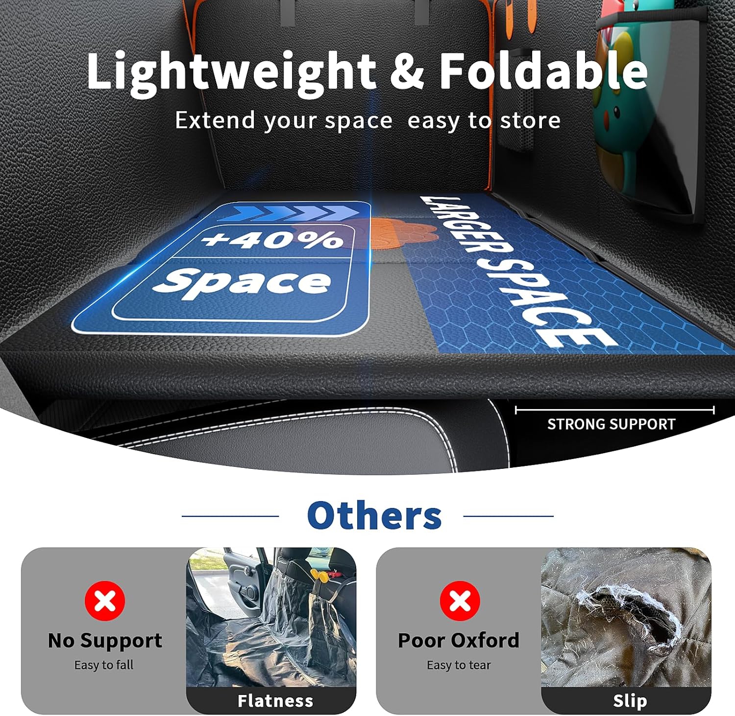 - ใ๐๐๐ญ๐๐ซ๐ฉ๐ซ๐จ๐จ๐ & ๐๐๐ซ๐๐ญ๐๐ก-๐๐๐ฌ๐ข๐ฌ๐ญ๐๐ง๐ญใThis back seat extender for dogs combines a 8-layer reinforced design (Thickened PU Leather + TPUwaterproof coating +PP Cotton Layer + EVA non-slip base) to defend against spills, muddy paws, and odors while shielding seats from scratches. Machine-washable and wipe-clean surfaces handle mud, fur, and accidents effortlessly.