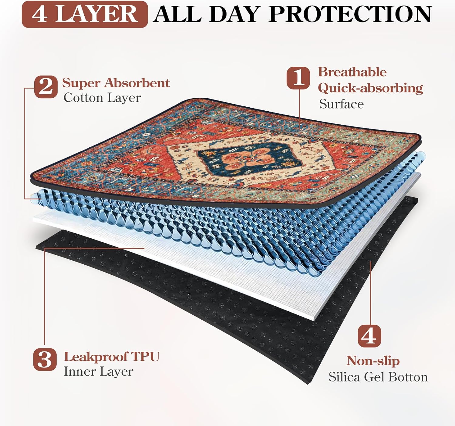 • Ultra Absorbent and Leakproof: Featured a soft, fast-absorbing top layer and a high-density core that locks in moisture on contact. The waterproof TPU backing provides superior leak protection, keeping your floors and furniture clean and dry