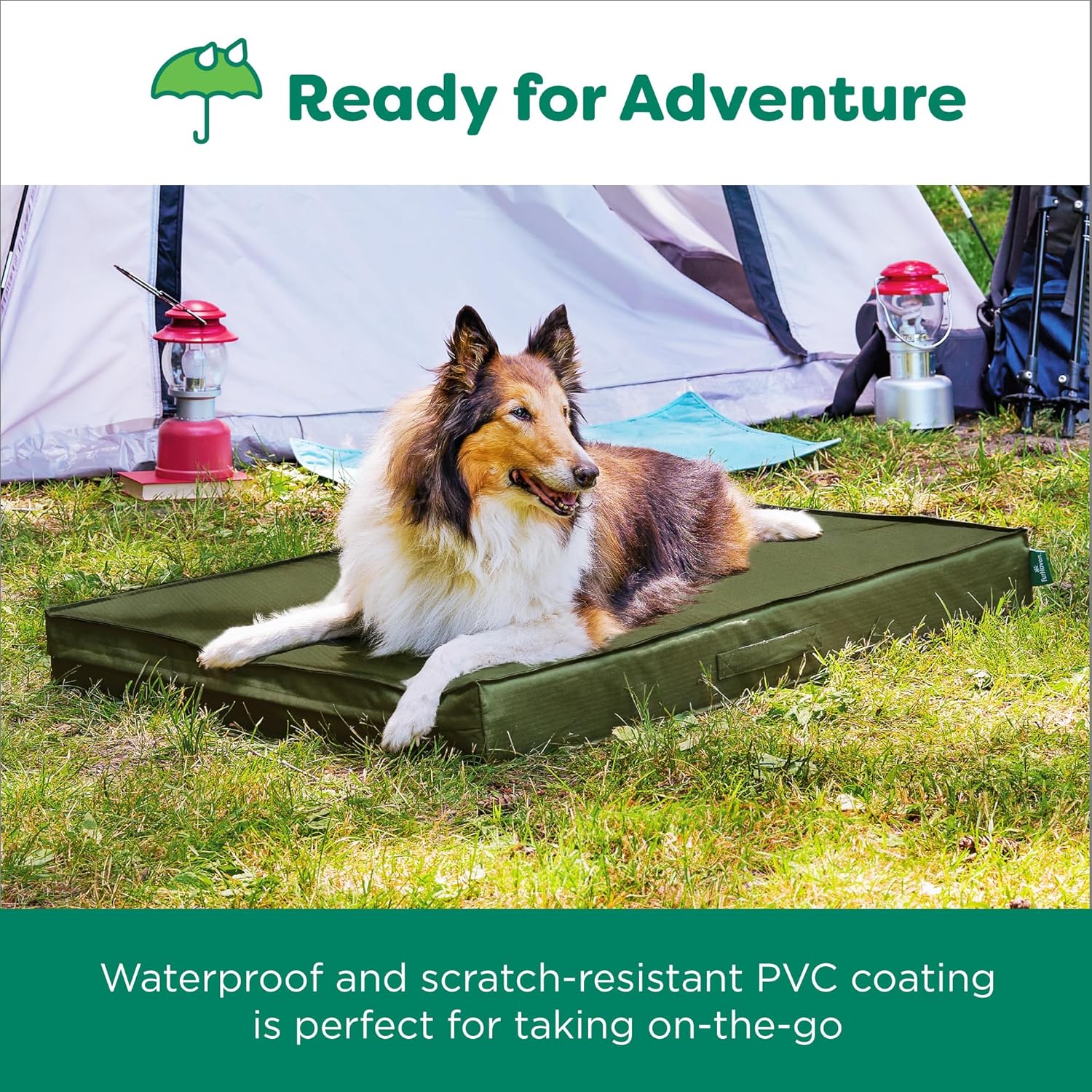 FurHaven Cooling Dog Bed – XXL Foam Mattress for Joint Pain Relief, Waterproof Liner, Removable Washable Cover, Durable for Outdoor Use, Deluxe Grid Indoor/Outdoor Bed – Green, Jumbo Plus