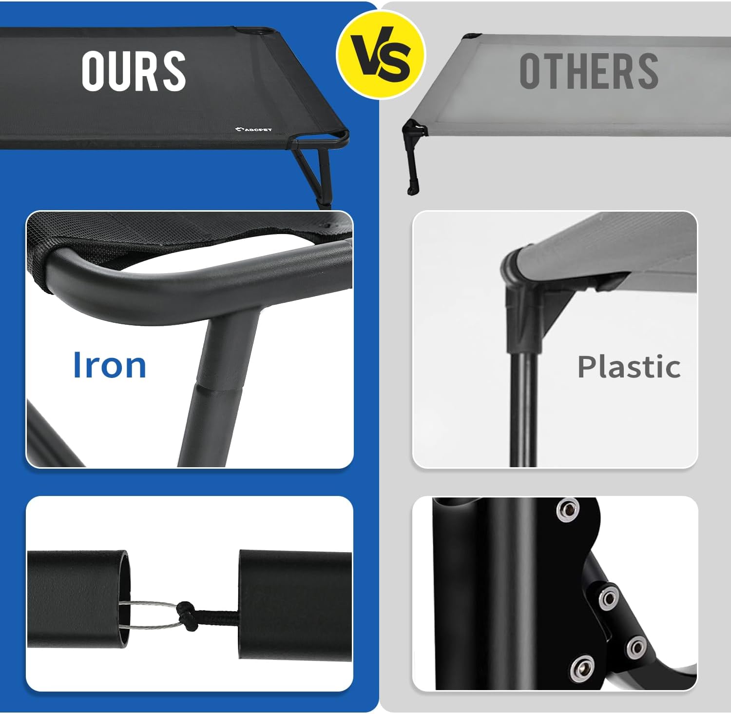 - Sturdy Iron Frame: Built with a robust 1.0/1.2mm thick flat round iron pipe, the elevated dog bed is extremely durable. It can withstand the weight of large dogs and the wear - and - tear of daily use. The powder - coated finish not only prevents rust but also adds a matt look to the elevated cot.