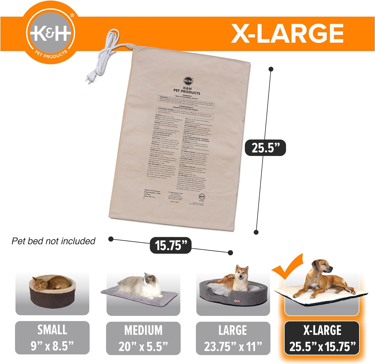 - SIZE & ENERGY-EFFICIENT: K&H X-Large Pet Bed Warmer measures 25½" x 15¾", making it perfect for extra-Large pet beds, and it uses only 22 watts of power, ensuring low energy consumption while providing cozy warmth for your pet