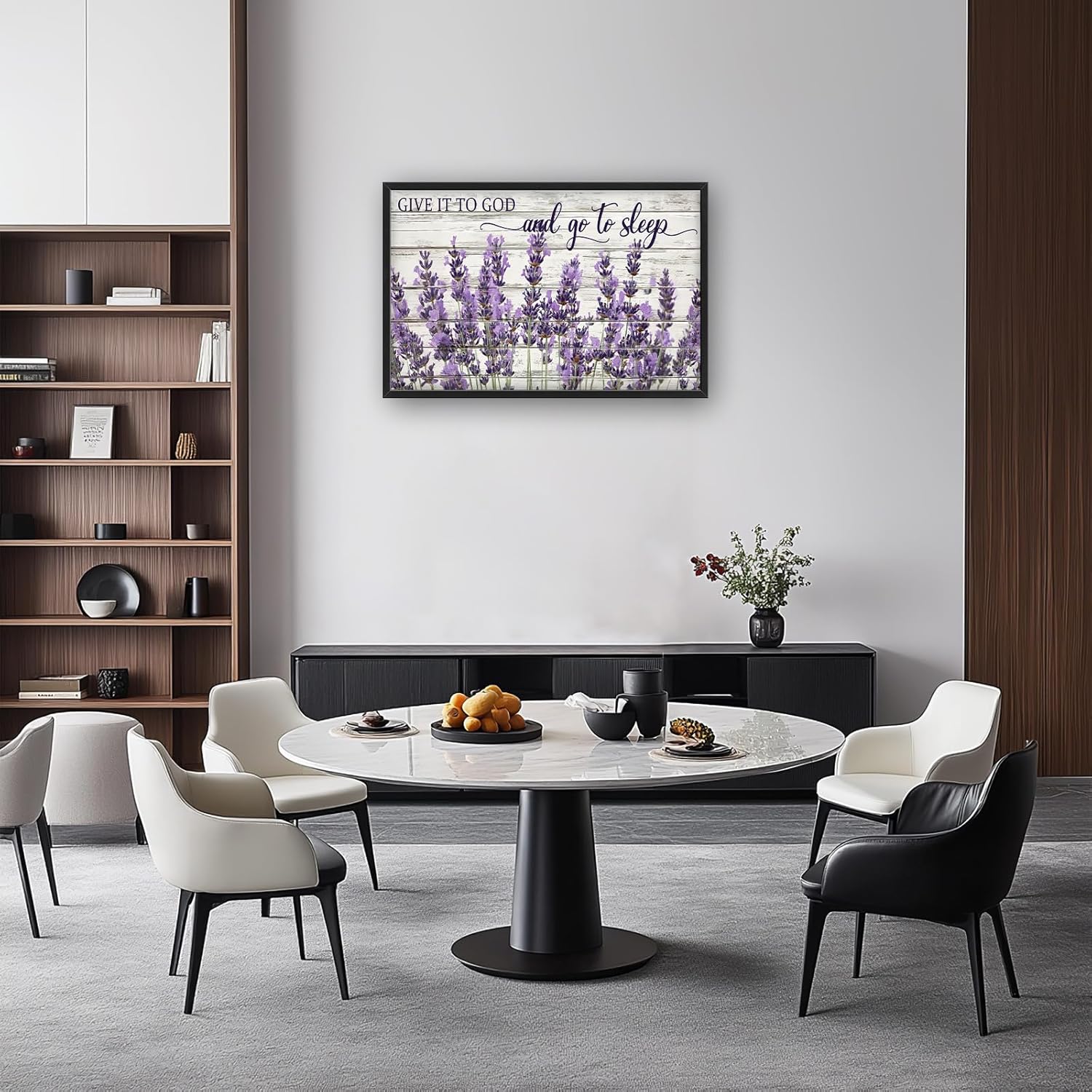 Large Lavender Wall Art for Living Room, Framed Oversized Rustic Floral Wall Decor Christian Give It To God Canvas Painting Modern Artwork for Living Room Bathroom Bedroom Office Dining Room 36"x24"