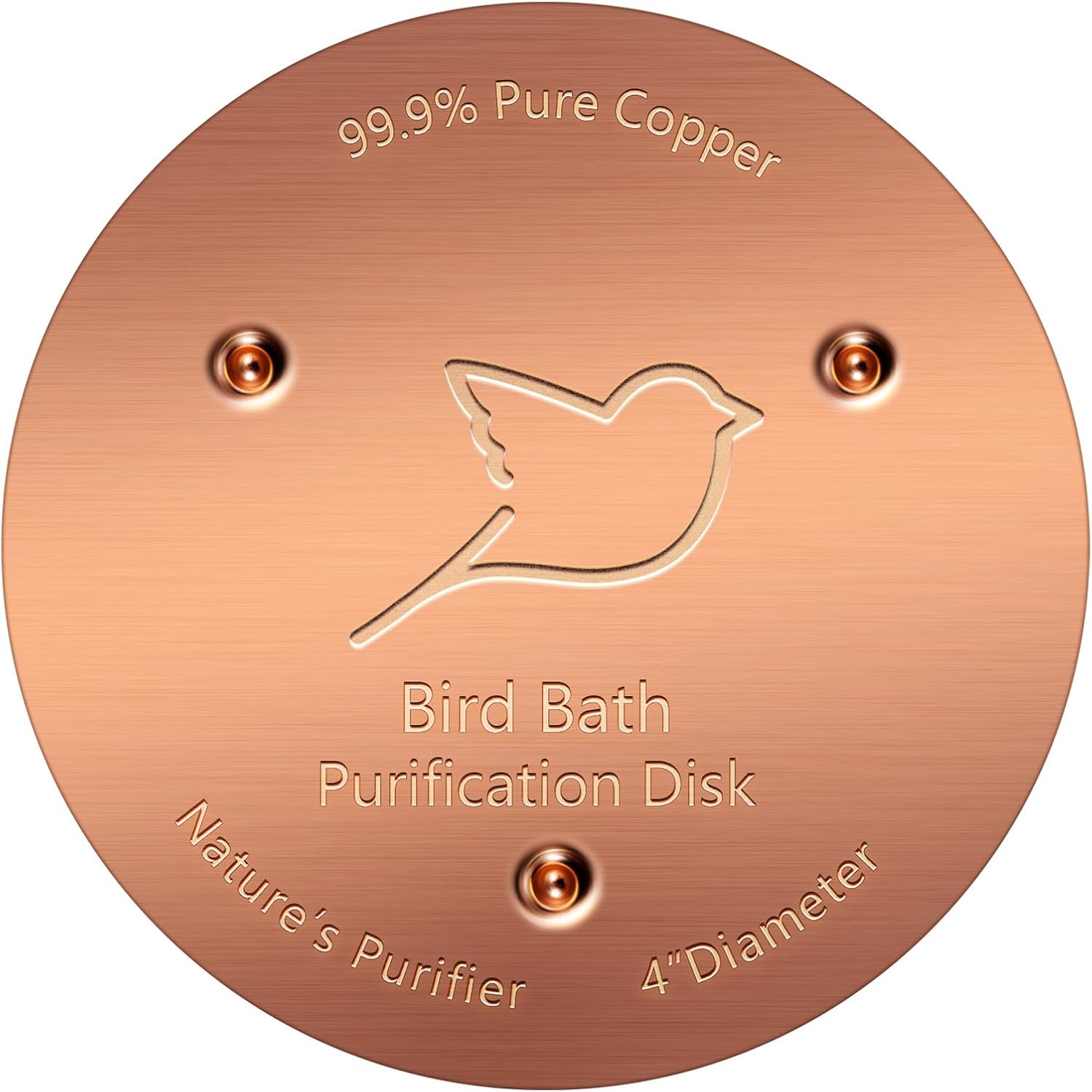 • Optimal water purification: Designed to keep your birdbath water fresh and clean, the copper disk efficiently purifies water by naturally eliminating debris, such as droppings and leaves, reducing the need for frequent cleaning and ensuring your feathered friends have a safe drinking and bathing environment