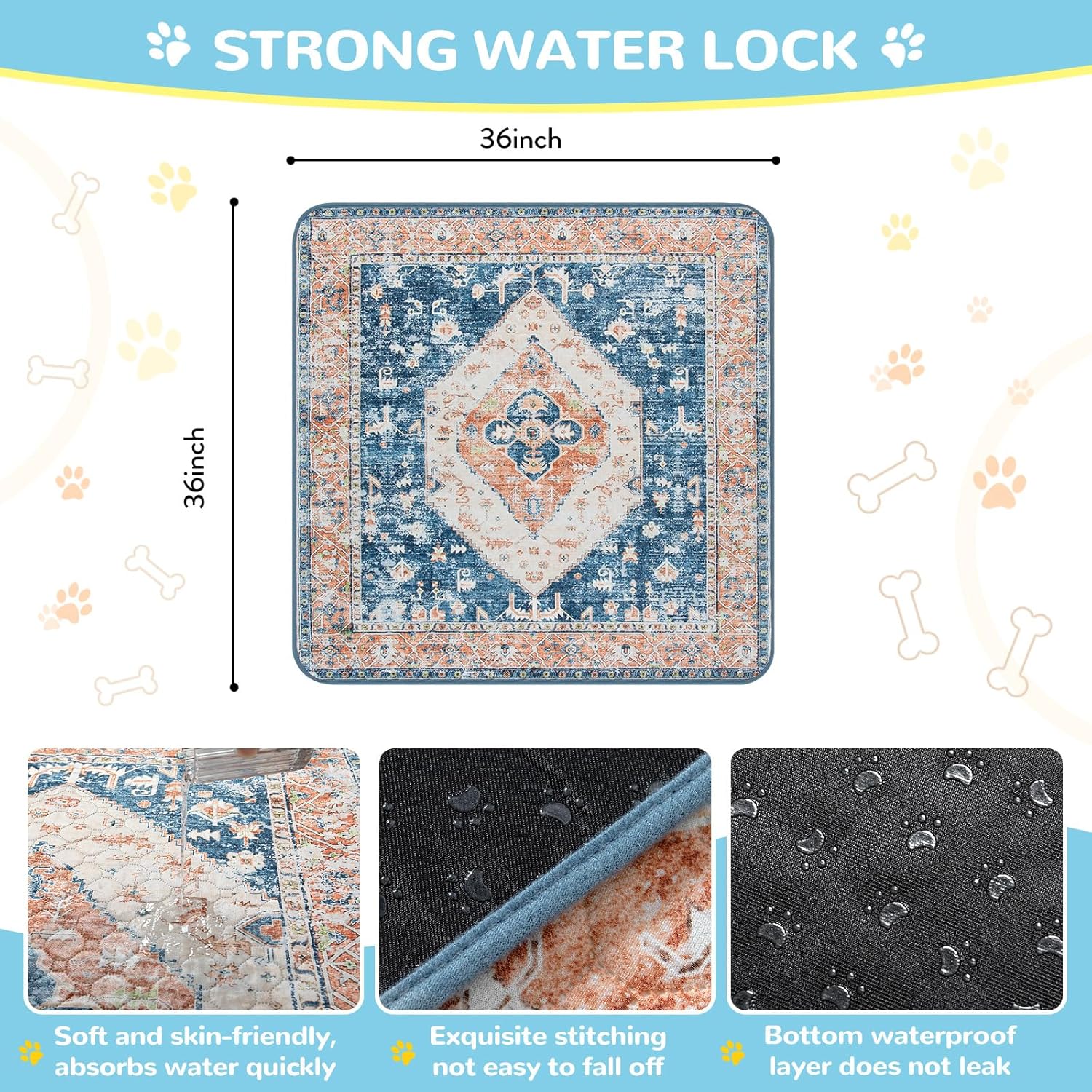 Lahome Super Absorbent Washable Pee Pads for Dogs - Secure Floor Protection - Non-Slip, Leakproof Reusable Pads for Training, Crates & Playpens (2 Pack, 36"x36", Beige Blue)