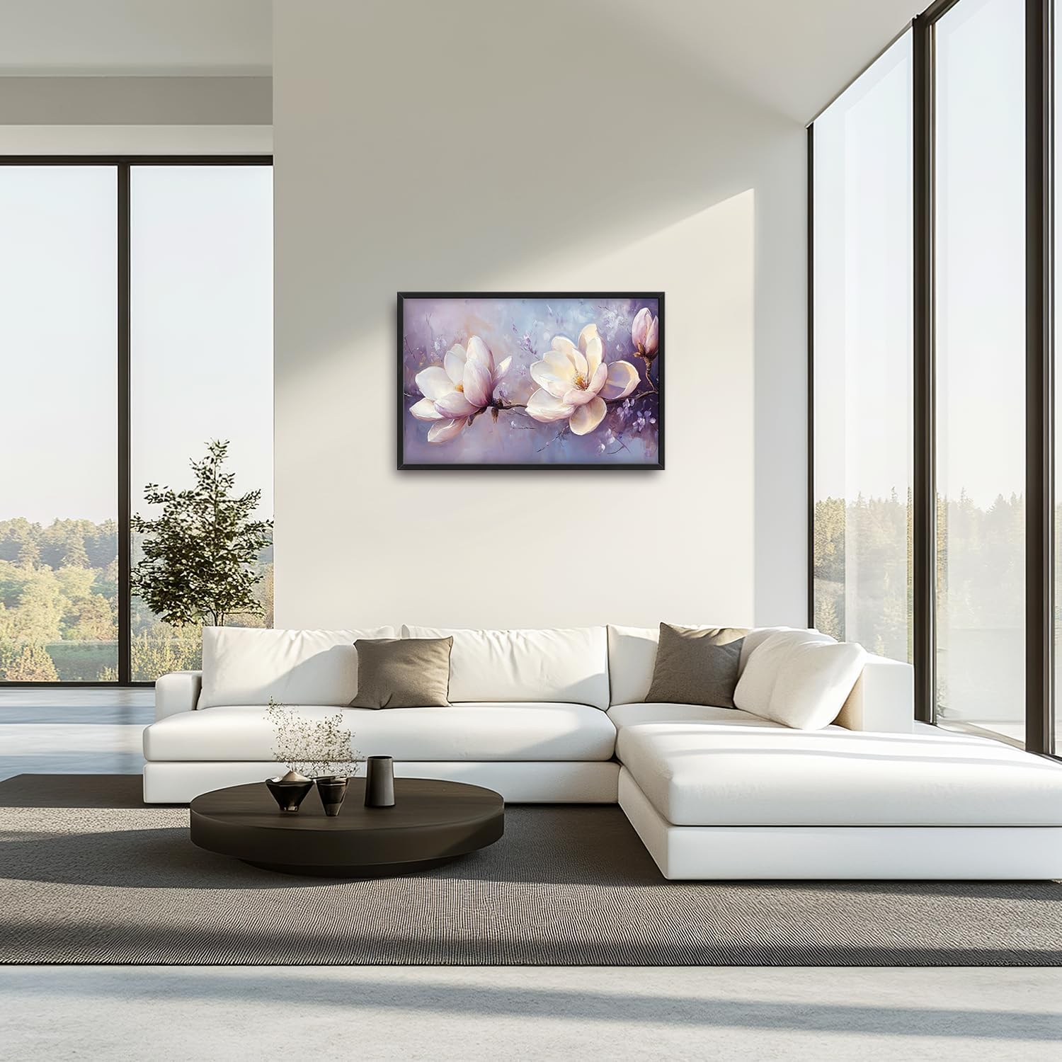 Large Floral Landscape Wall Art for Living Room, Purple Flower Canvas Oversized Wall Decor, Aesthetics Framed Pictures Painting Print Artwork for Bedroom Office 36L" x 24W"