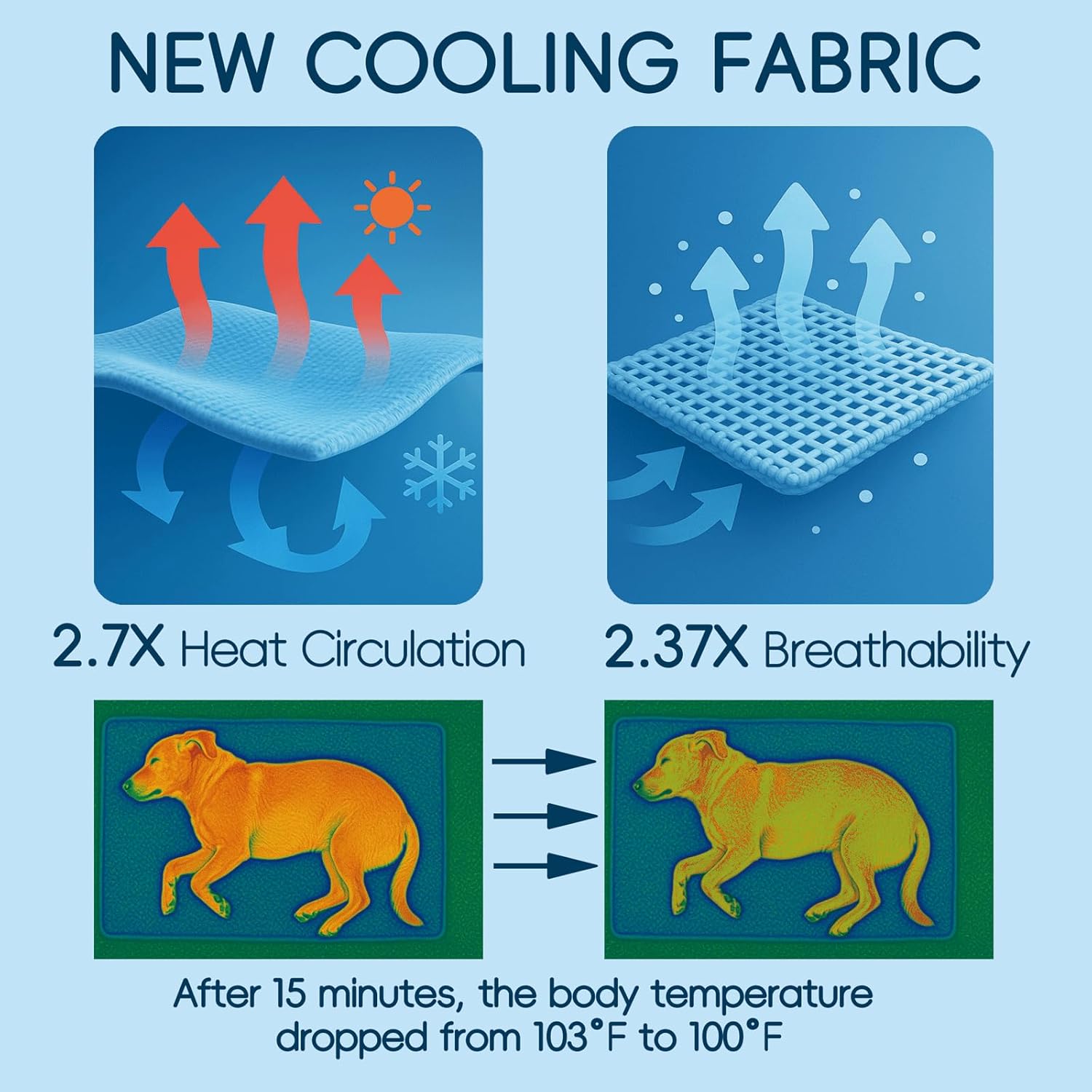 - The Ultimate Cooling Pad for Dog: Crafted from natural, breathable cooling fabric, this dog cooling mat efficiently regulates your pet's body temperature. The water-filled design absorbs heat, delivering long-lasting relief to prevent overheating and dehydration-perfect for hot days and outdoor adventures.