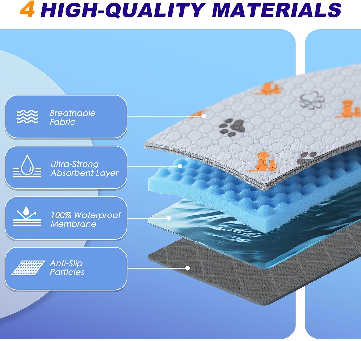 - 【Anti-Slip Bottom Design】The Anti-slip silicone design of the dog mat bottom layer allows the waterproof dog mat to stay on the floor or carpet, keeping your pet safe. Ideal for puppies, older dogs, and those with incontinence issues or who are being trained to use pee pads.